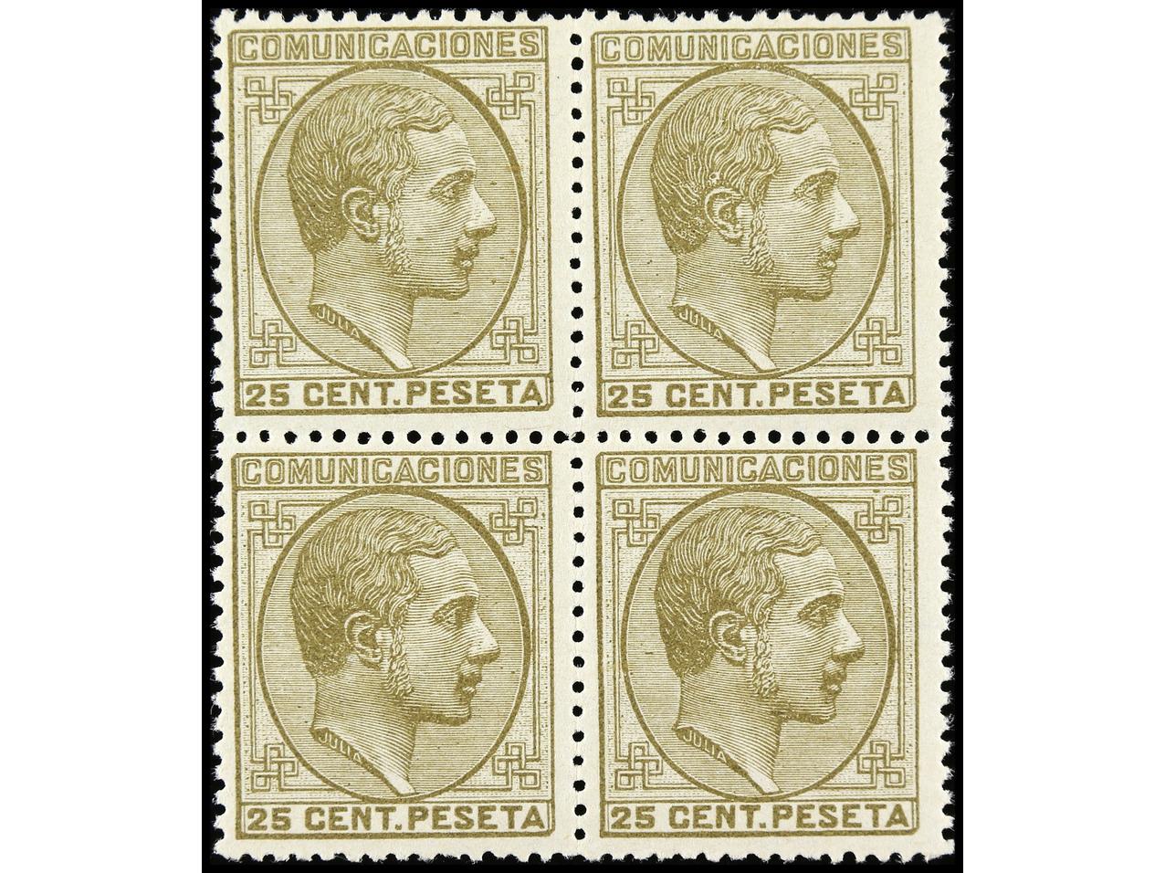 ESPAÑA. 25 cts. sepia. Bloque de cuatro, excelente centraje. LUJO. Ed.194 (4). Cat. 152€. (Image1)