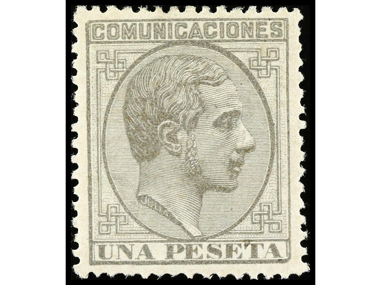 ESPAÑA. 1 pta. gris. Centraje perfecto. LUJO. Ed.197. Cat. 130€. (Image1)