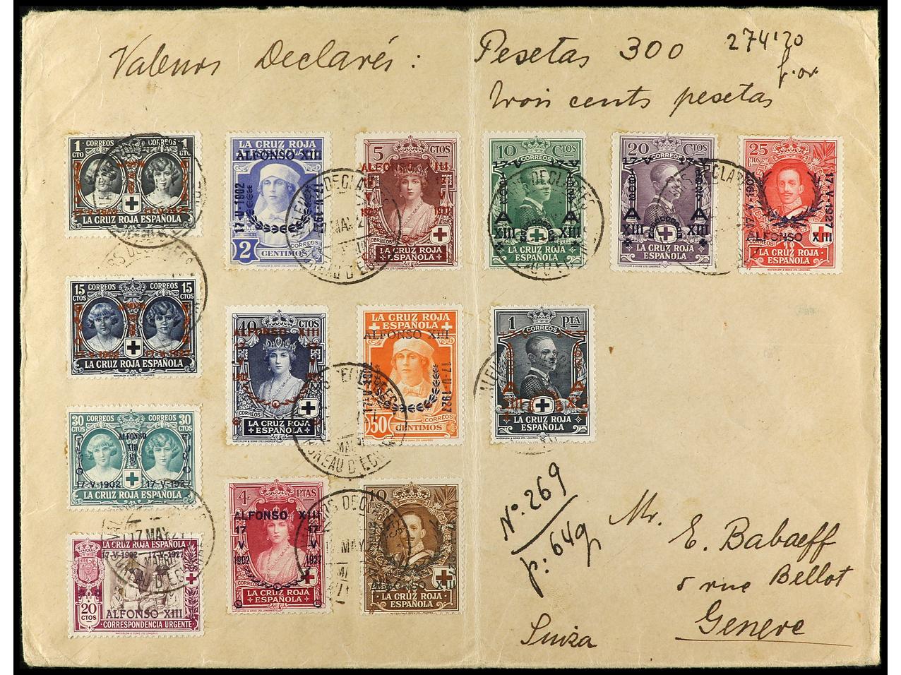ESPAÑA. 1927. MADRID a SUIZA. Serie completa en carta circulada, al dorso llegada. RARA. Ed.349/62. (Image1) (Image2)