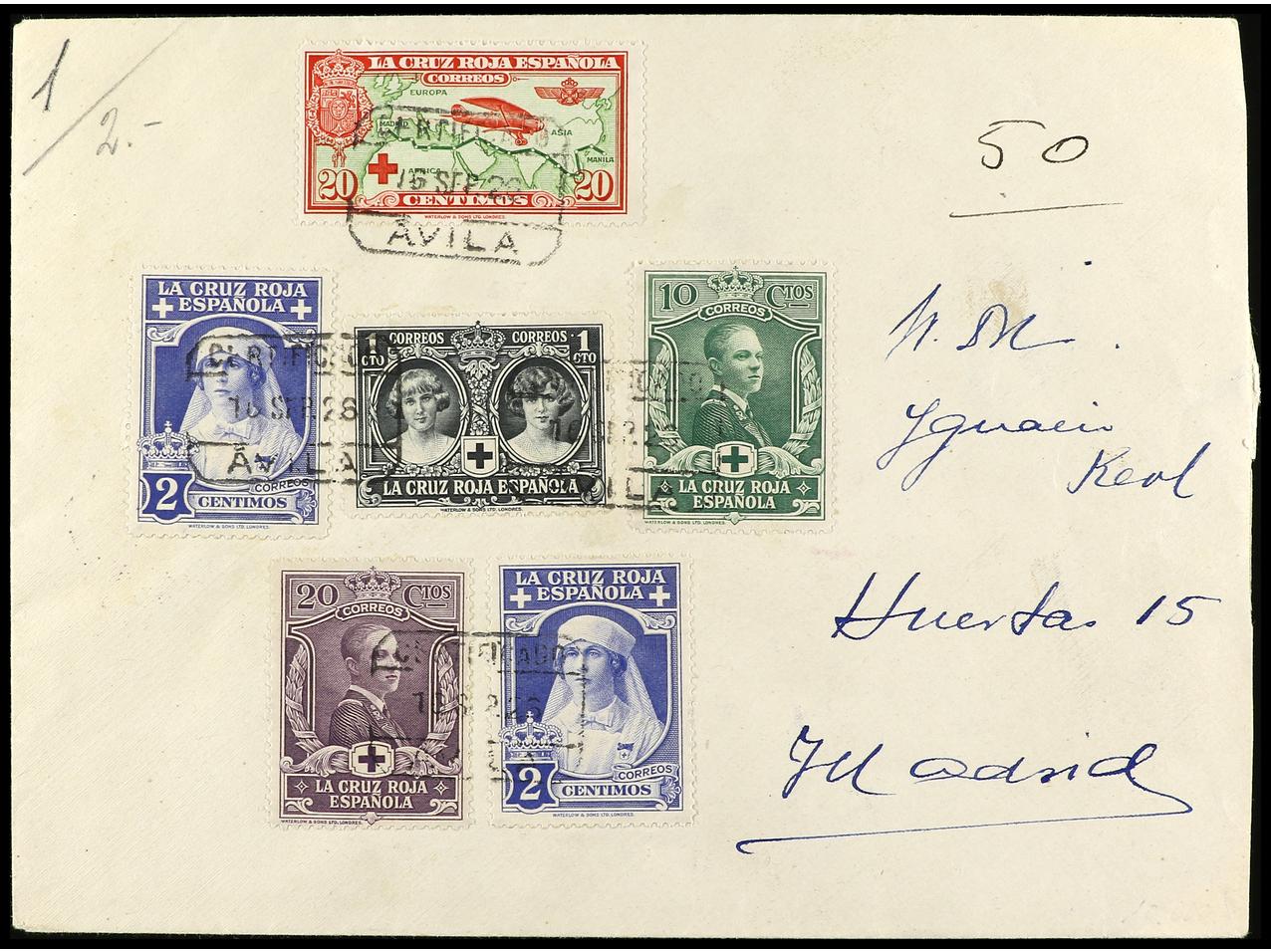 ESPAÑA. 1926. ÁVILA a MADRID. Carta certificada, precioso franqueo, al dorso llegada. Ed.325, 326 (2), 328, 330, 342. (Image1) (Image2)