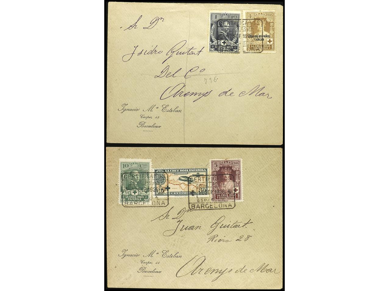 ESPAÑA. 1926. Dos cartas con franqueos de 5 cts. + 10 cts. + 40 cts. y 1 pta. + 4 pts. (habilitado Tánger) sin llegada. (Image1) (Image2)