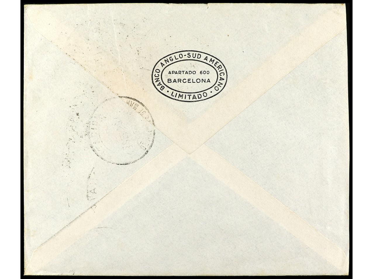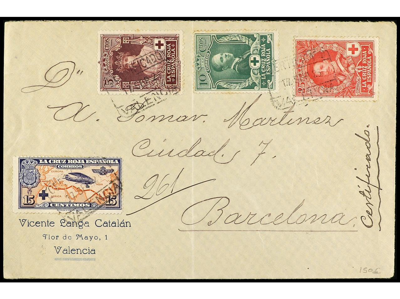 ESPAÑA. 1926. VALENCIA a BARCELONA. Carta certificada, al dorso llegada. Ed.327/28, 331, 341. (Image1) (Image2)