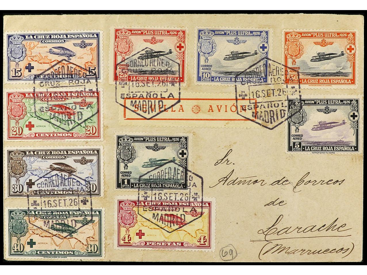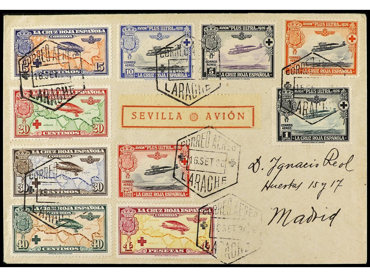 ESPAÑA. 1926. LARACHE a MADRID. Serie completa en carta circulada, al dorso llegada. Ed.339/48. (Image1) (Image2)
