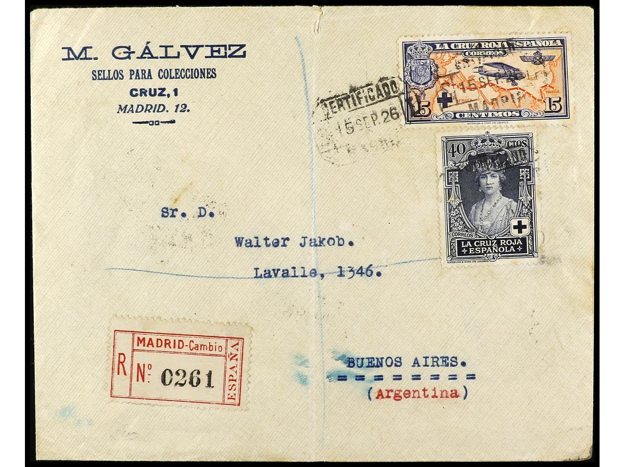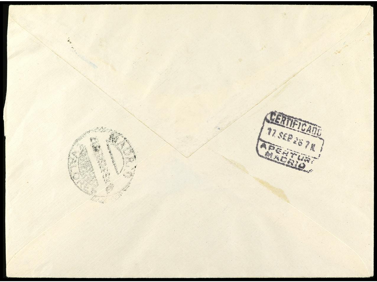 ESPAÑA. 1926. MADRID a BUENOS AIRES. 15 cts. y 40 cts. carta certificada, al dorso llegada. Ed.333, 341. (Image1) (Image2)