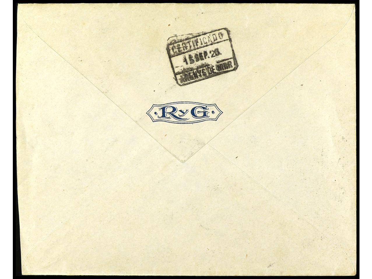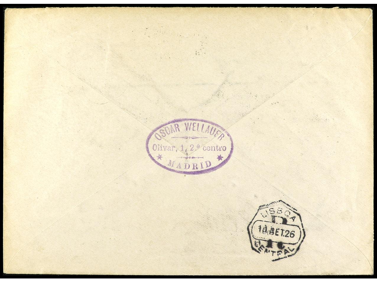 ESPAÑA. 1926. MADRID a LISBOA. Espectacular franqueo, carta certificada, al dorso llegada. Ed.332/37, 344, 345, 348. (Image1) (Image2)