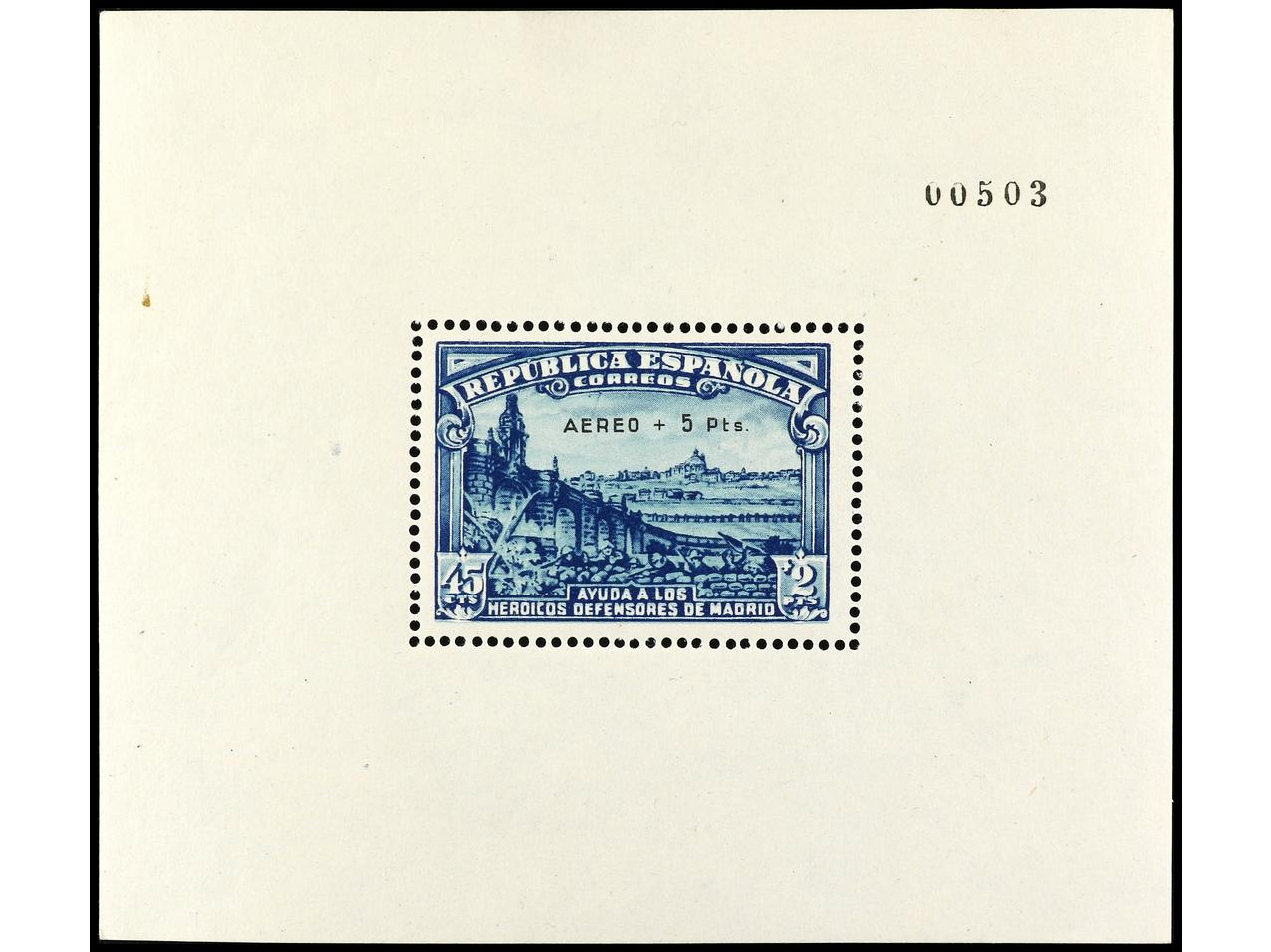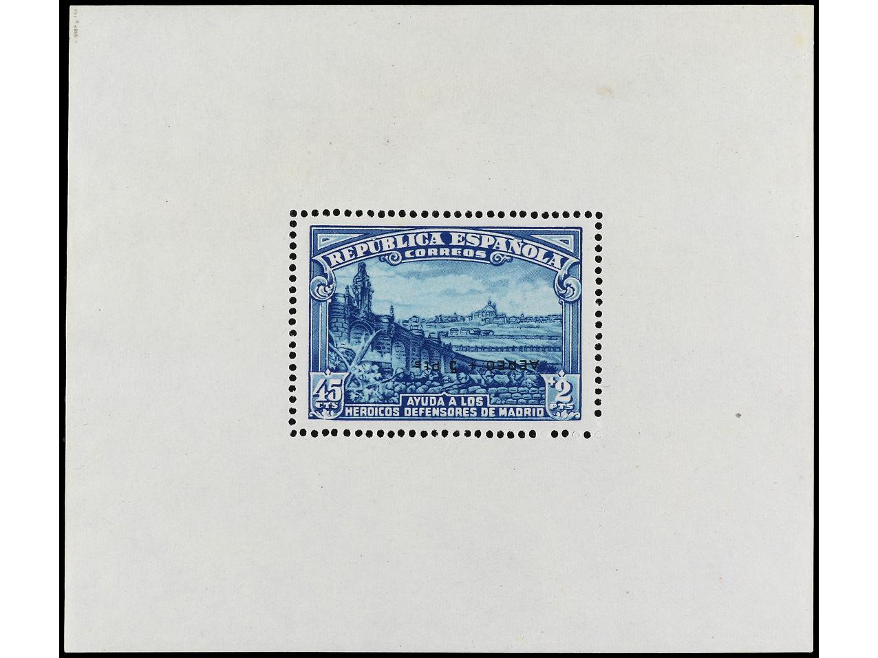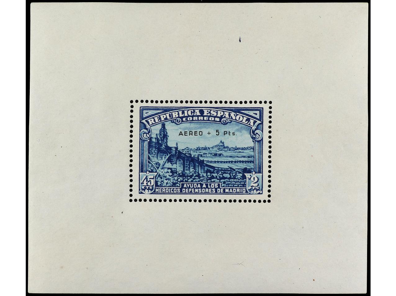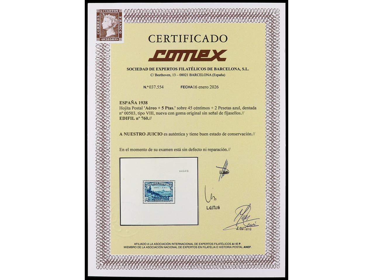 ESPAÑA. HB. Aéreo + 5 pts. Inclusión propia del papel. Tipo VIII. RARA. Cert. COMEX. Ed.760. Cat. 6.500€. (Image1) (Image2)