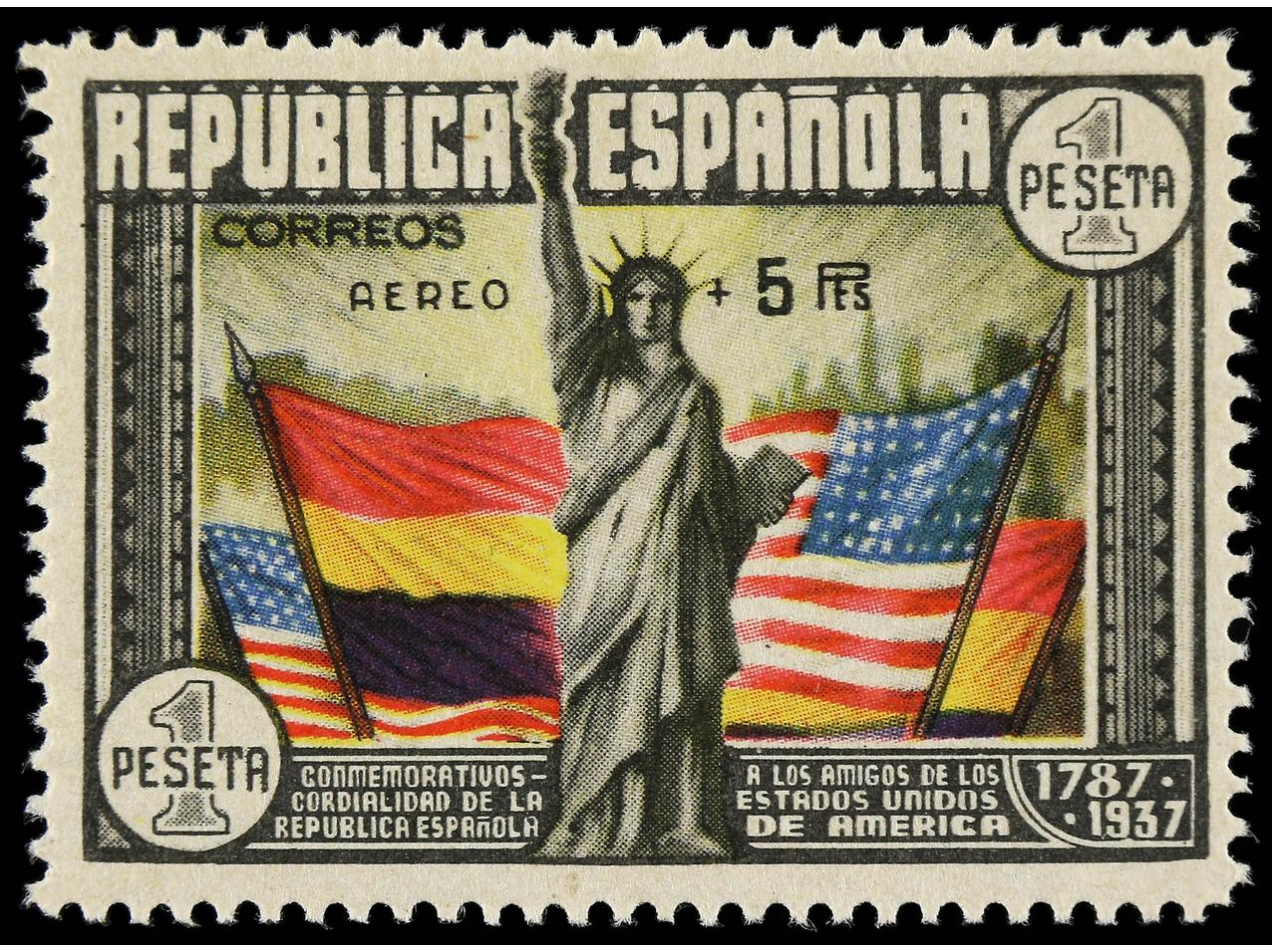 ESPAÑA. Aéreo + 5 pts. multicolor. SIN DENTAR. Goma oscura. Ed.765s. Cat. 700€. (Image1)