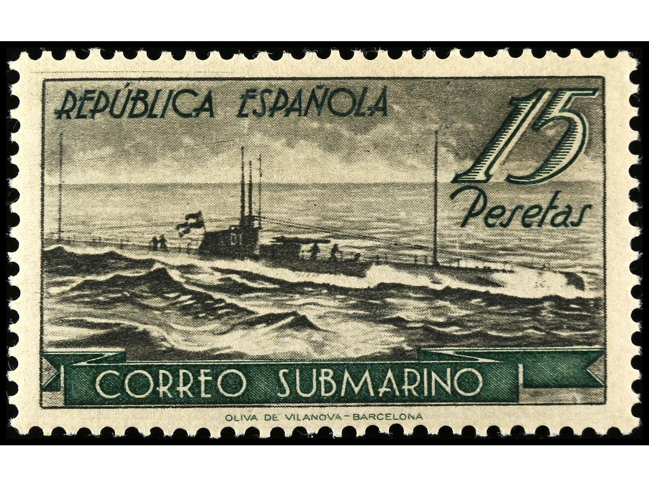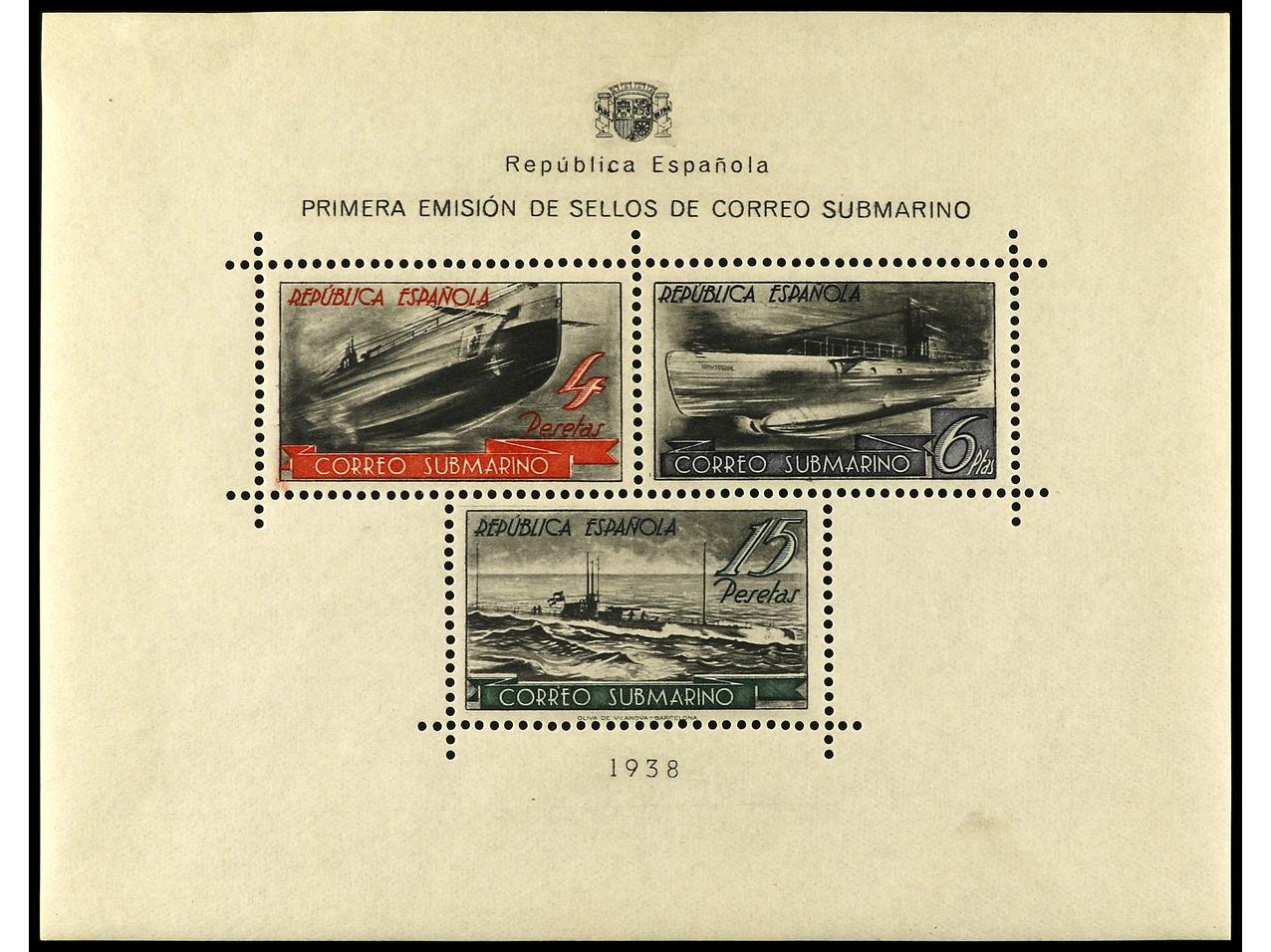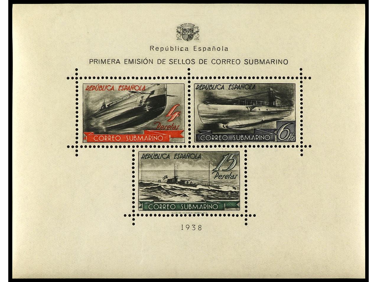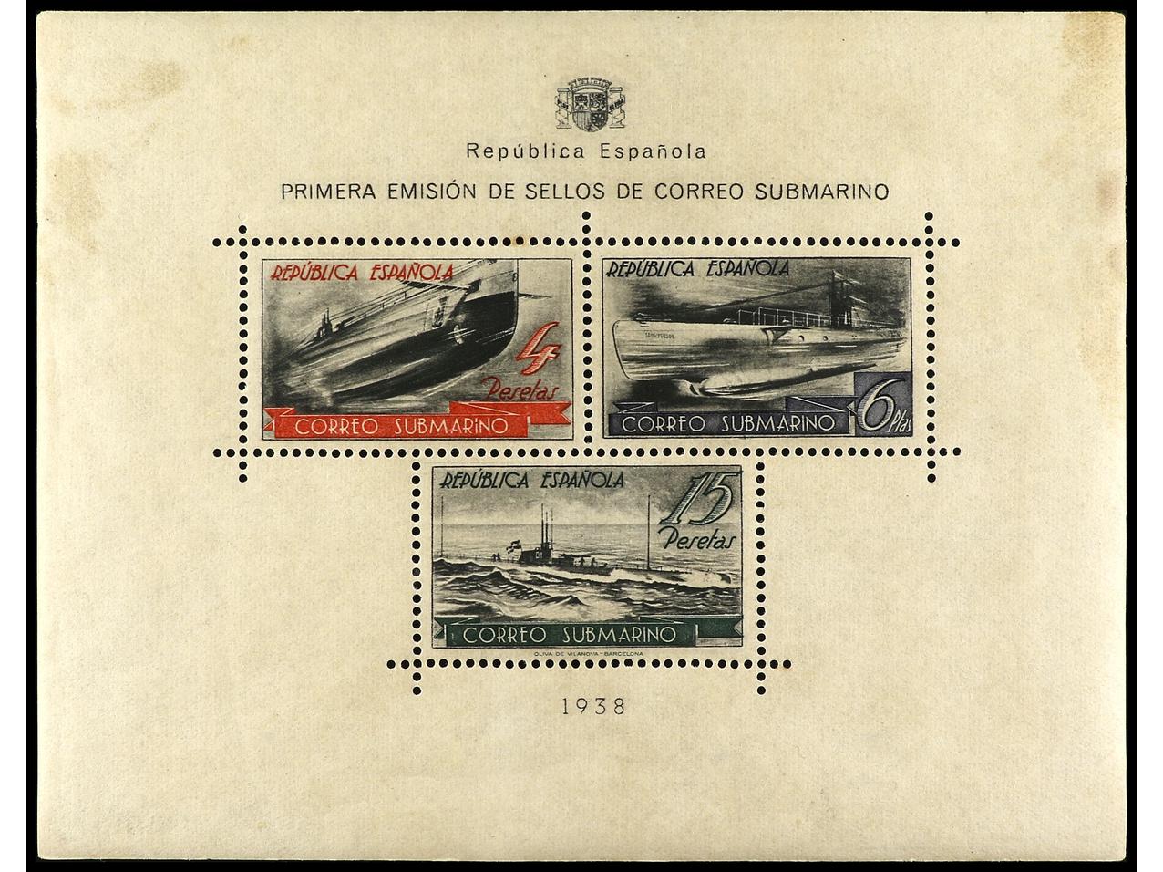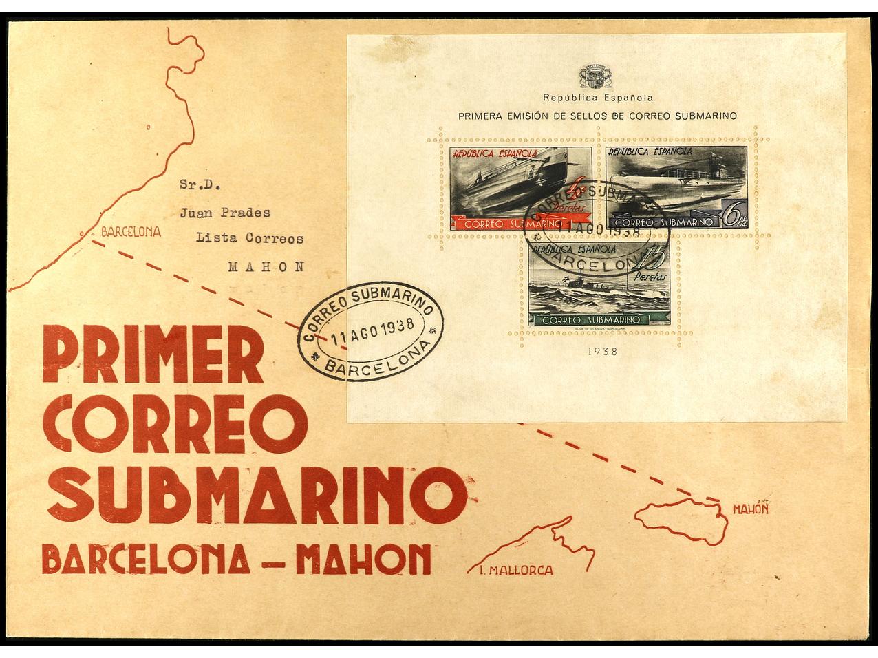 ESPAÑA. 1938. BARCELONA a MAHÓN. HB circulada en el sobre conmemorativo del viaje por correo submarino, al dorso llegada y firma manuscrita ´El Ambulante Submarino Tomás Orós´. RARA. Ed.781. (Image1) (Image2)
