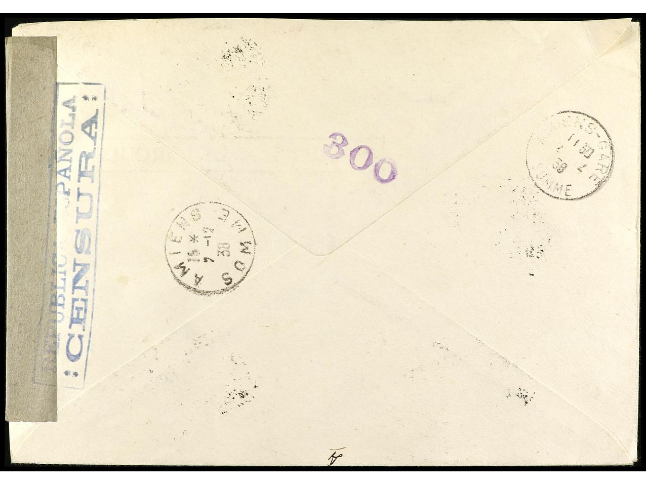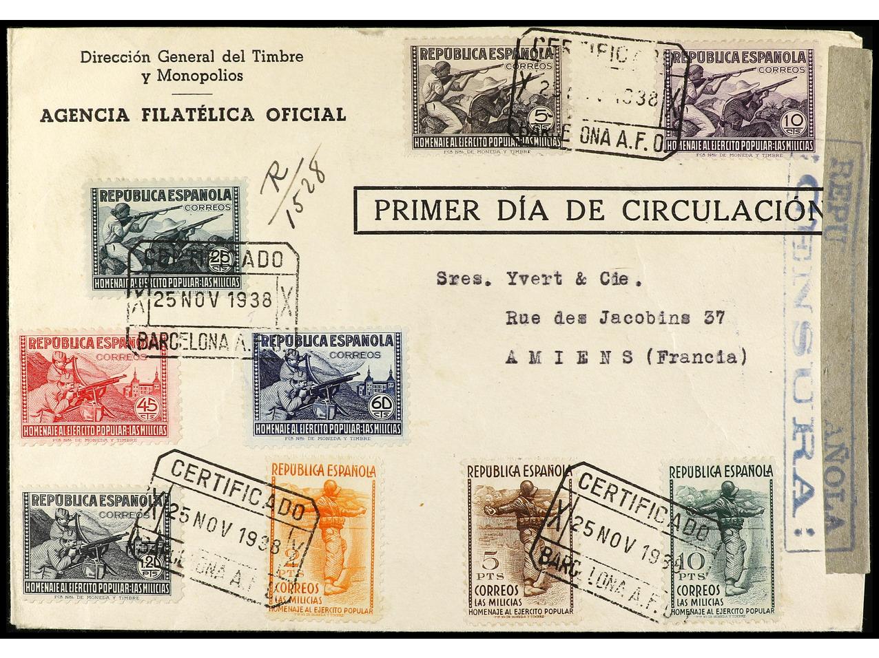 ESPAÑA. 1938. BARCELONA a FRANCIA. Serie completa en carta circulada, al dorso llegada. PRECIOSA y RARA. Ed.792/800. (Image1) (Image2)