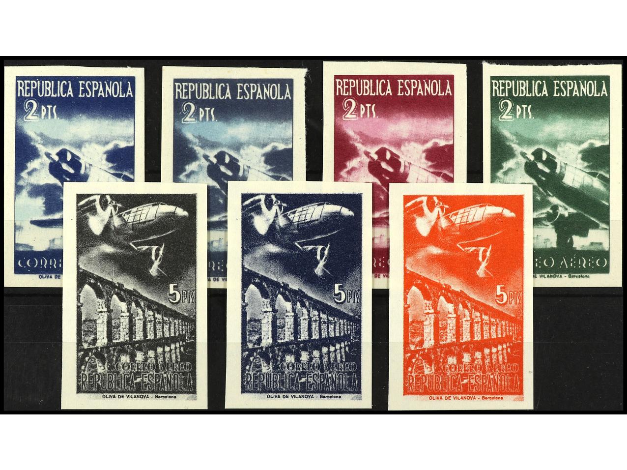 ESPAÑA. SERIE COMPLETA. 7 valores NO EXPENDIDOS. Segunda tirada en offset. Firmados F. del TARRÉ. Ed.NE 39/45s. (Image1) (Image2)