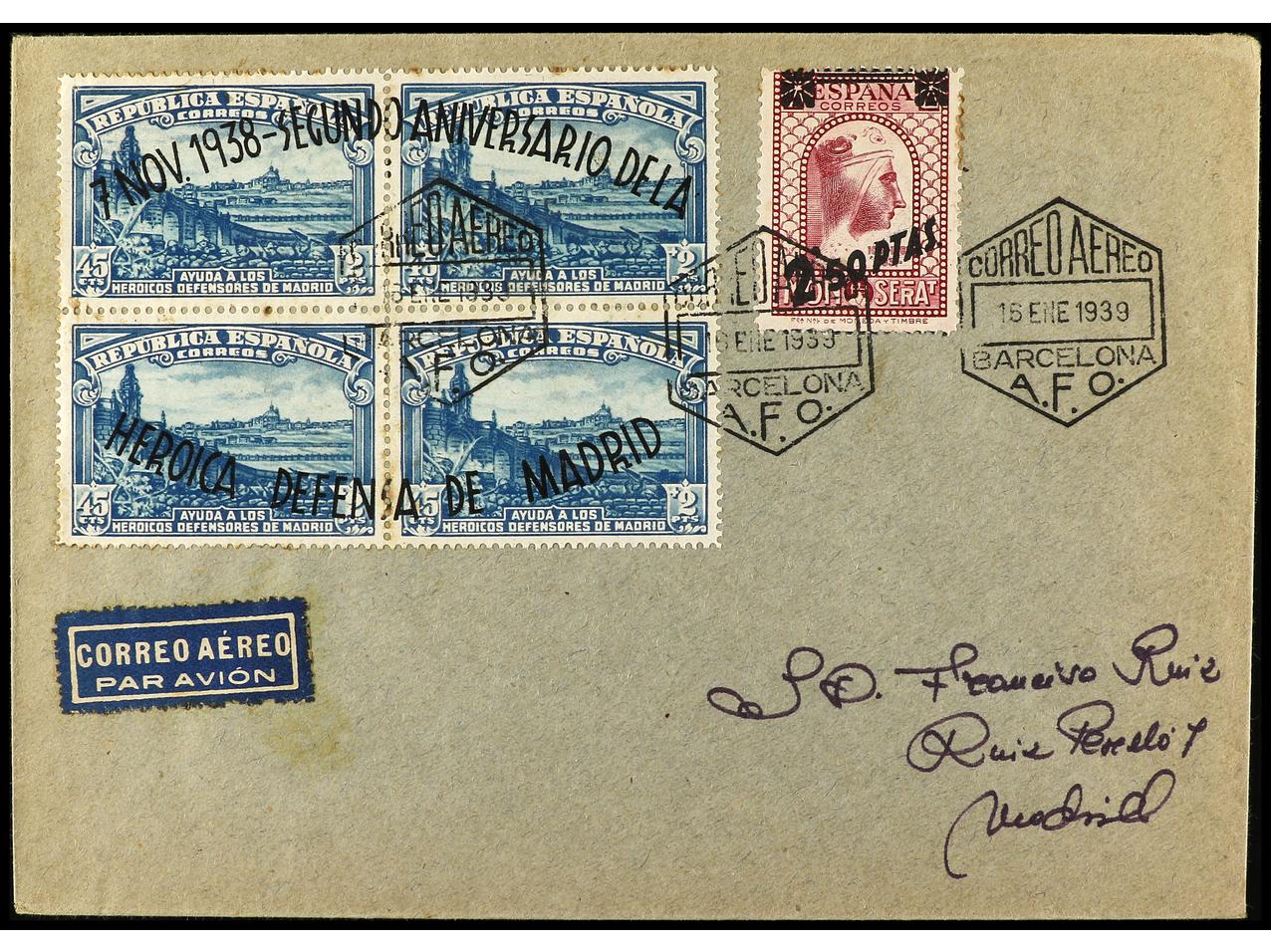 ESPAÑA. 1939. Carta sin circular y con matasellos de favor de la A.F.O. Ed.790, 791. (Image1) (Image2)