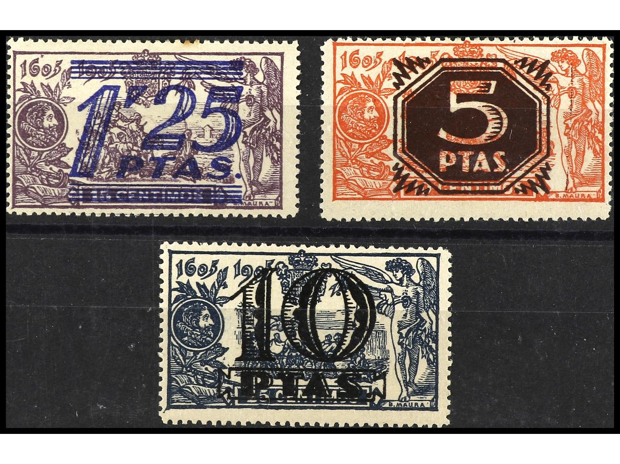 ESPAÑA. SERIE COMPLETA. 3 valores. MUY RARA. Tirada 500. 1,25 pts. sobre 15 cts. leve sombra del tiempo. Ed.NE 35/7. Cat. 900€. (Image1) (Image2)