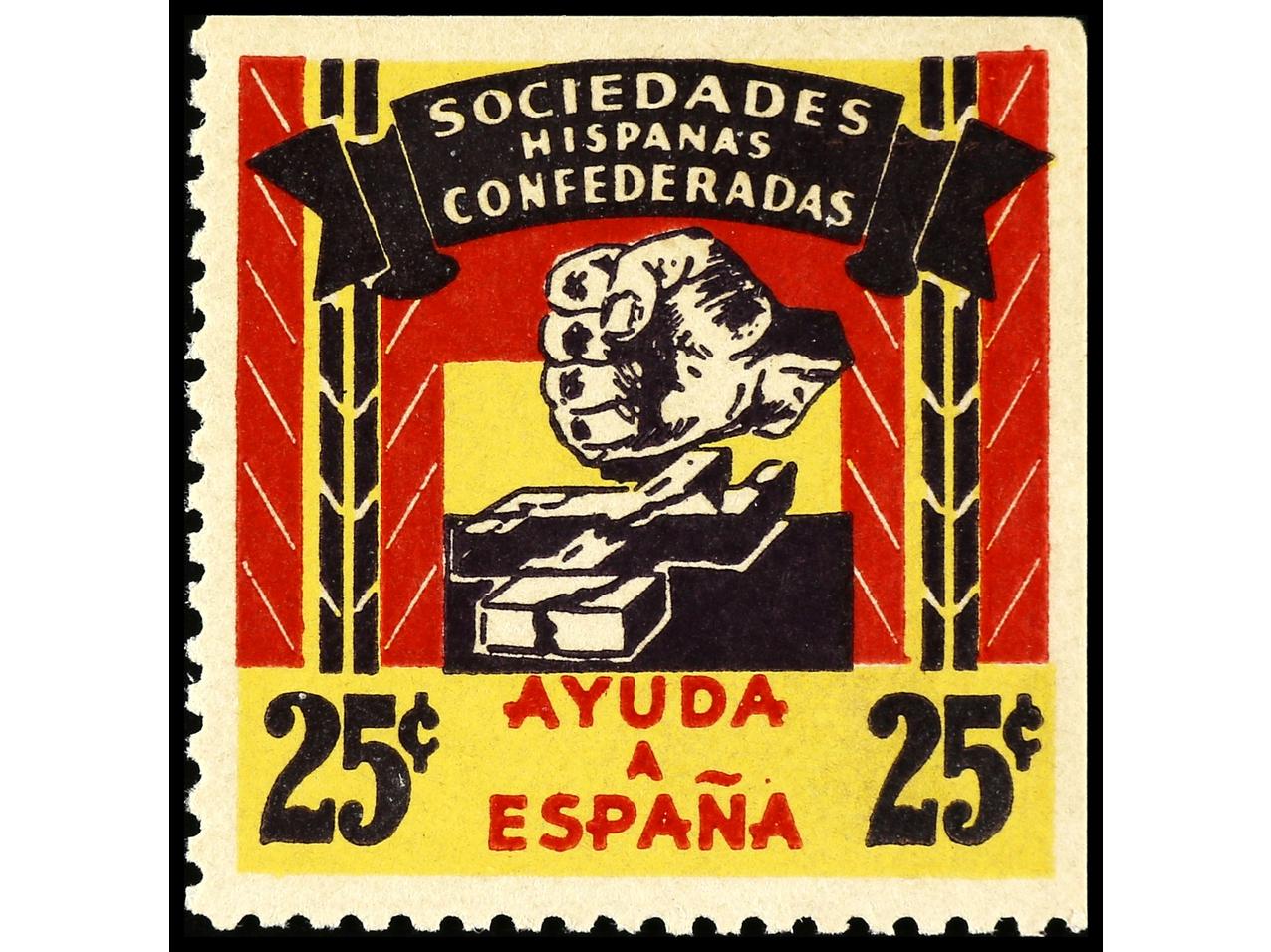 ESPAÑA GUERRA CIVIL. SOCIEDADES HISPANO CONFEDERADAS. 25 cts. multicolor. Ayuda a España. Viñeta editada en México (All. 2769). (Image1)