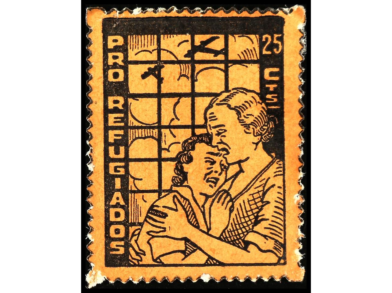 ESPAÑA GUERRA CIVIL. PRO REFUGIADOS. 25 cts. negro s. naranja, valor no reseñado. (Tipo All. 245). MUY RARA. (Image1)