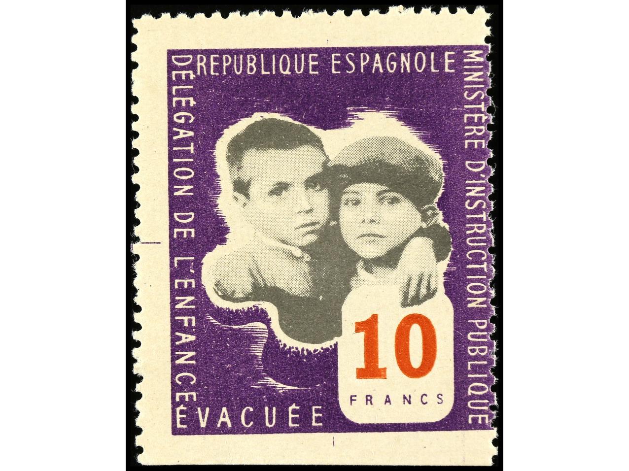 ESPAÑA GUERRA CIVIL. DELEGATION DE L´ENFANCE EVACUÉE. 10 Fr. negro, rojo y lila. RARA. (All. 2642). (Image1)