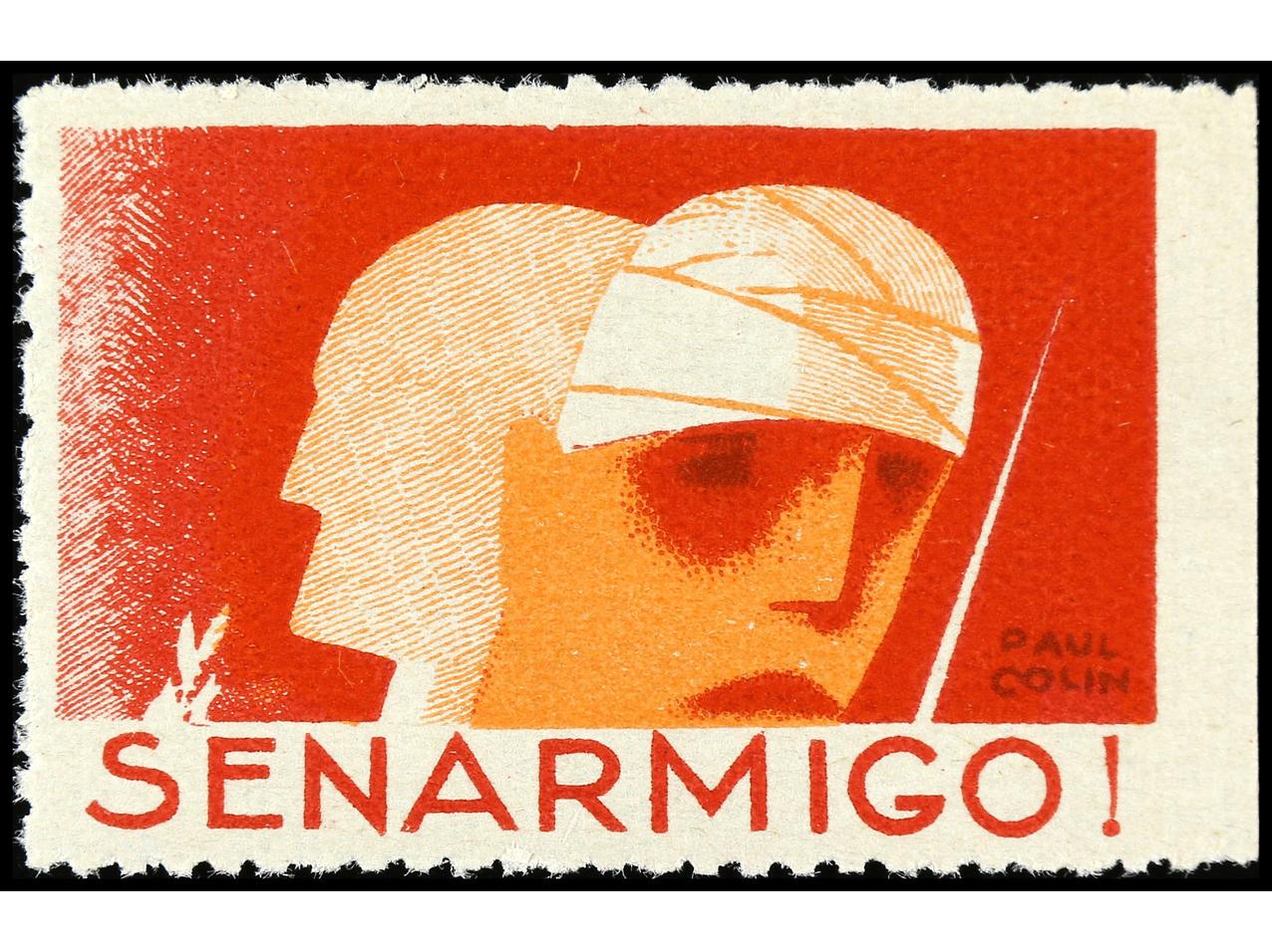ESPAÑA GUERRA CIVIL. Viñeta antibelicista diseñada por Paul Colin con leyenda SENARMIGO! (Desarme) editada en Francia. (All. 2727). (Image1)