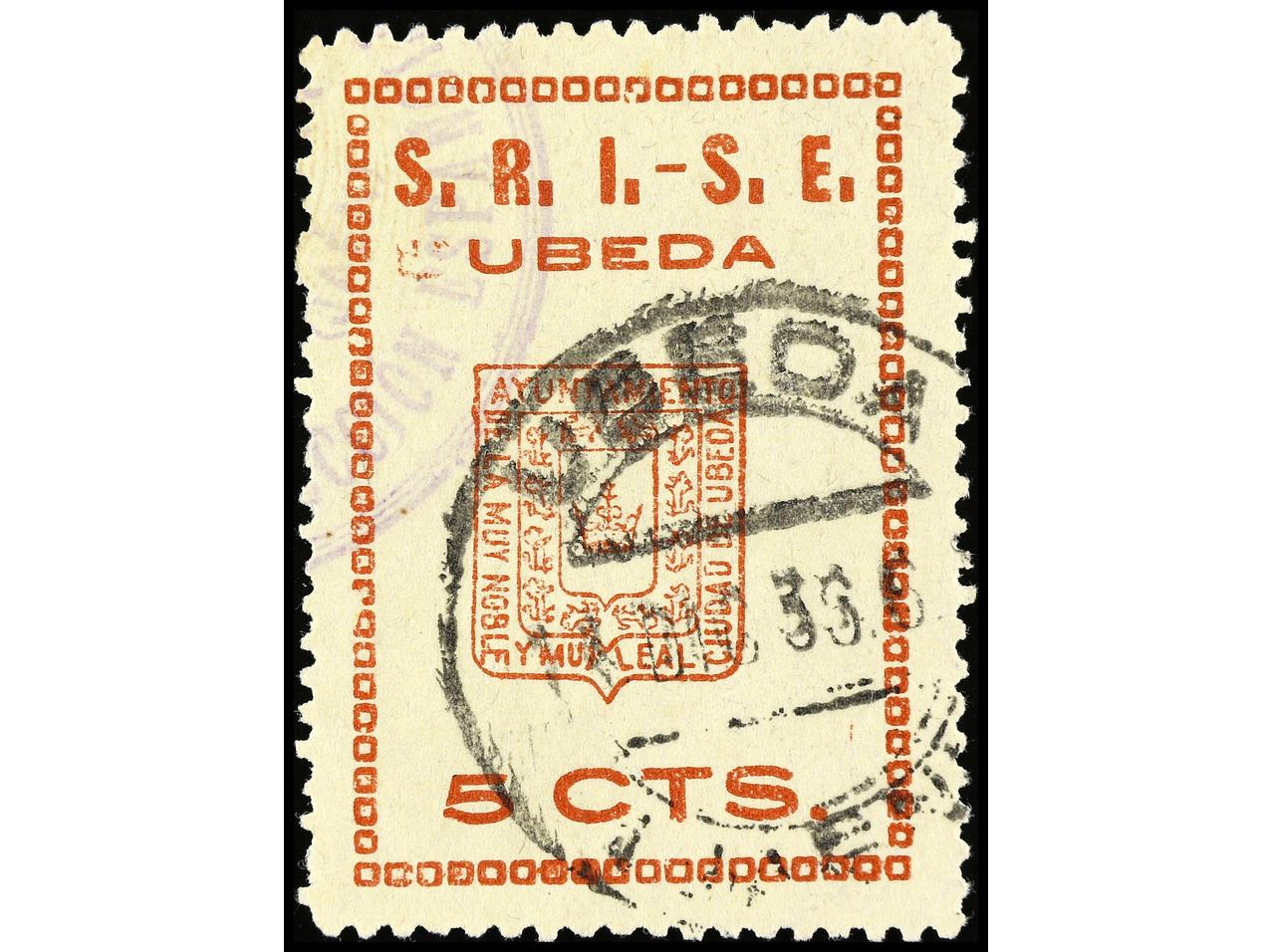 ESPAÑA GUERRA CIVIL. ÚBEDA (Jaén). 5 c. rojo. S.R.I. (All. 15). (Image1)