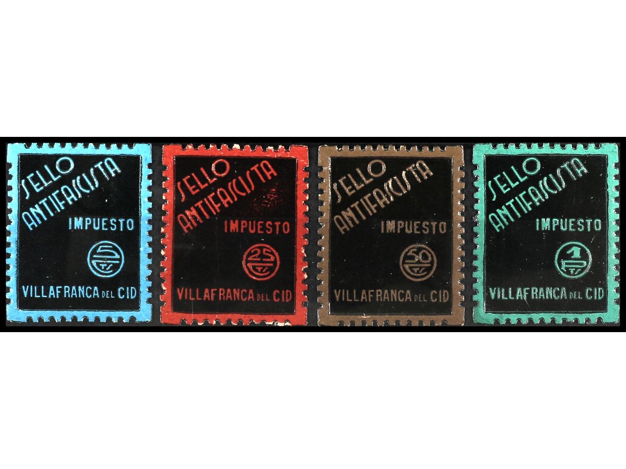 ESPAÑA GUERRA CIVIL. VILLAFRANCA DEL CID (Castellón). Serie completa. 4 valores. MUY RAROS. (All. 3/6). (Image1) (Image2)