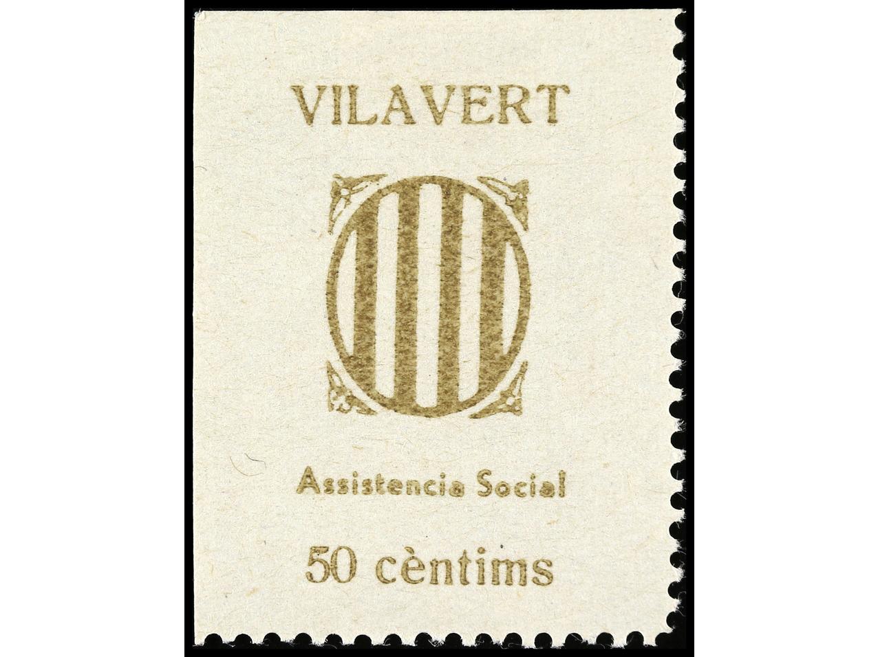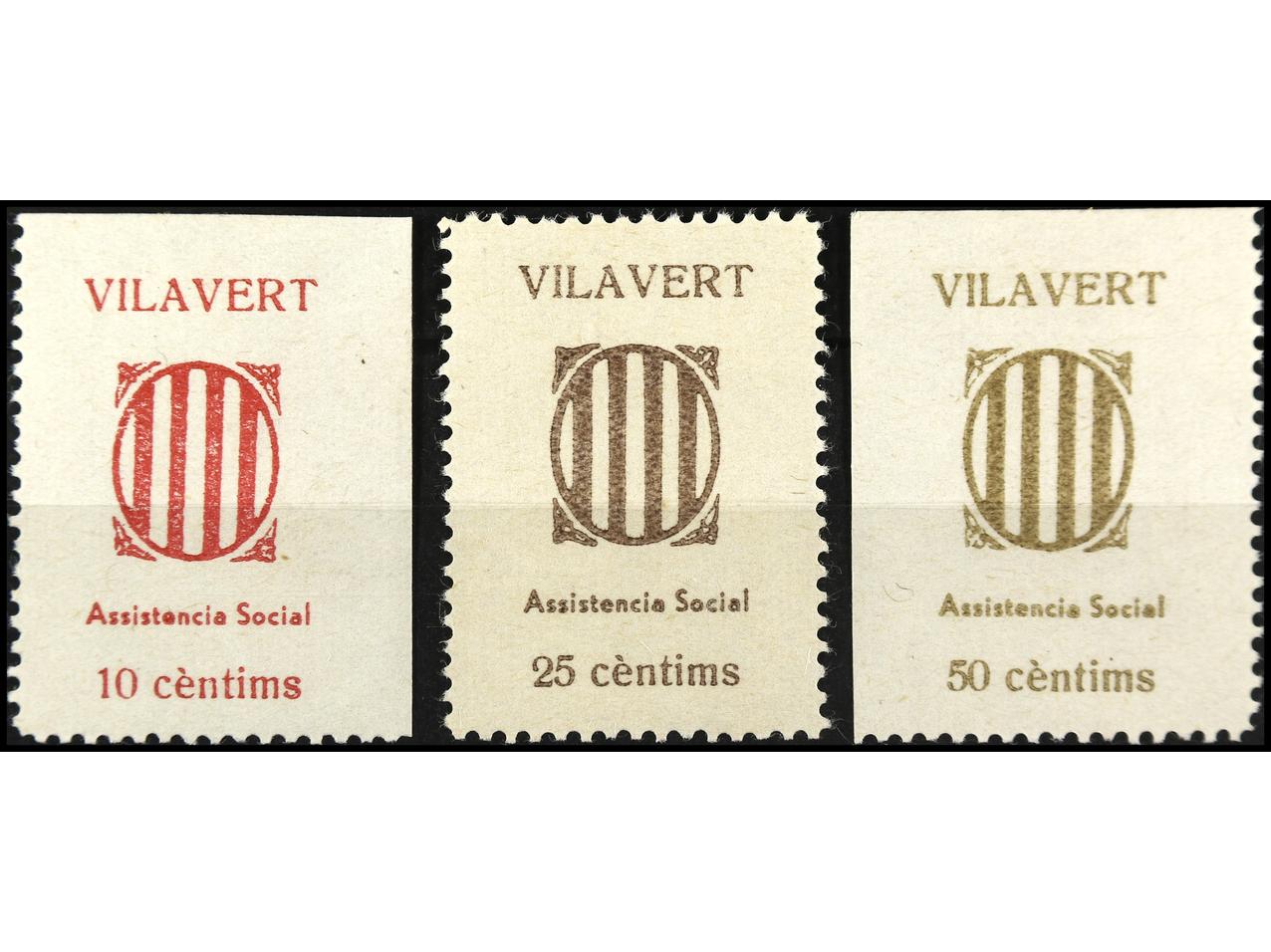 ESPAÑA GUERRA CIVIL. VILAVERT (Tarragona). 10 c., 25 c. y 50 c. Asistencia Social. (All. 2/4). (Image1) (Image2)