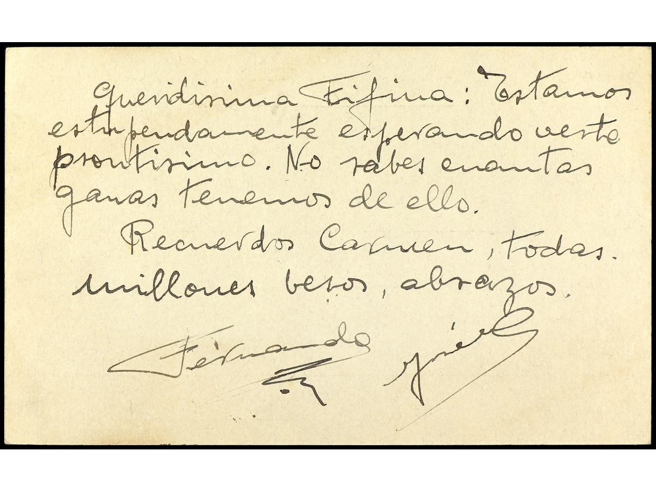 ESPAÑA GUERRA CIVIL. (1938 ca.). Tarjeta Postal circulada a Barcelona, marca de franquicia MINISTERIO DE DEFENSA NACIONAL/CAMPO DE TRABAJO Nº 4/S.I.M. (Servicio de Inteligencia Militar). RARA. (Image1) (Image2)