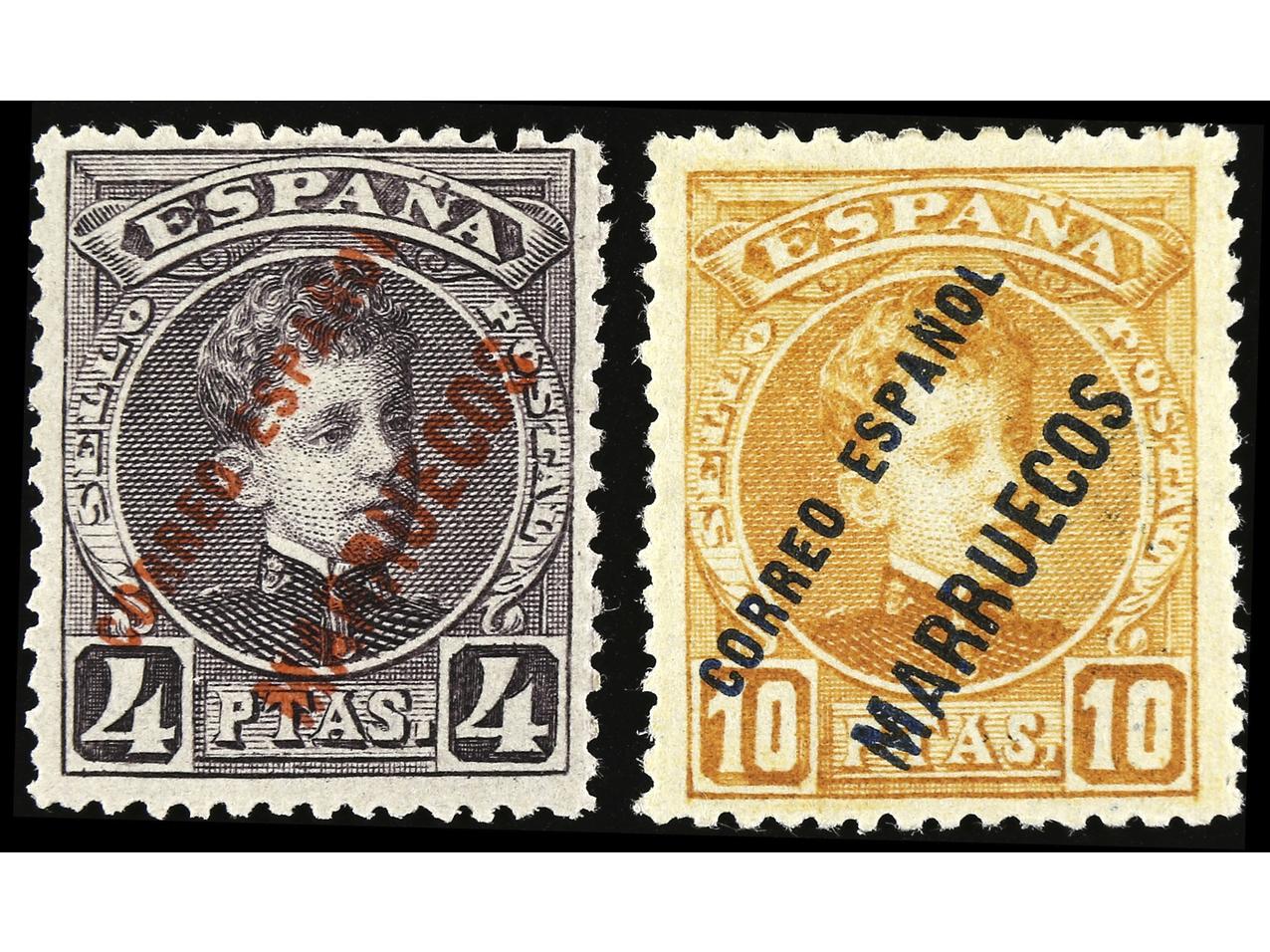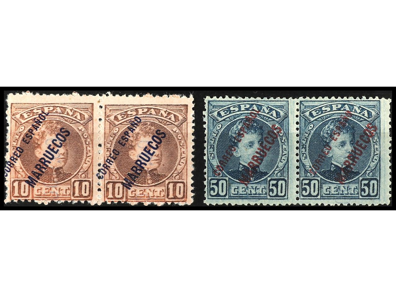 COLONIAS ESPAÑOLAS: MARRUECOS. 10 cts. rojo y 50 cts. azul. Parejas, un sello ESPAÑOL sin ´L´. Ed.4he, 10he. (Image1)