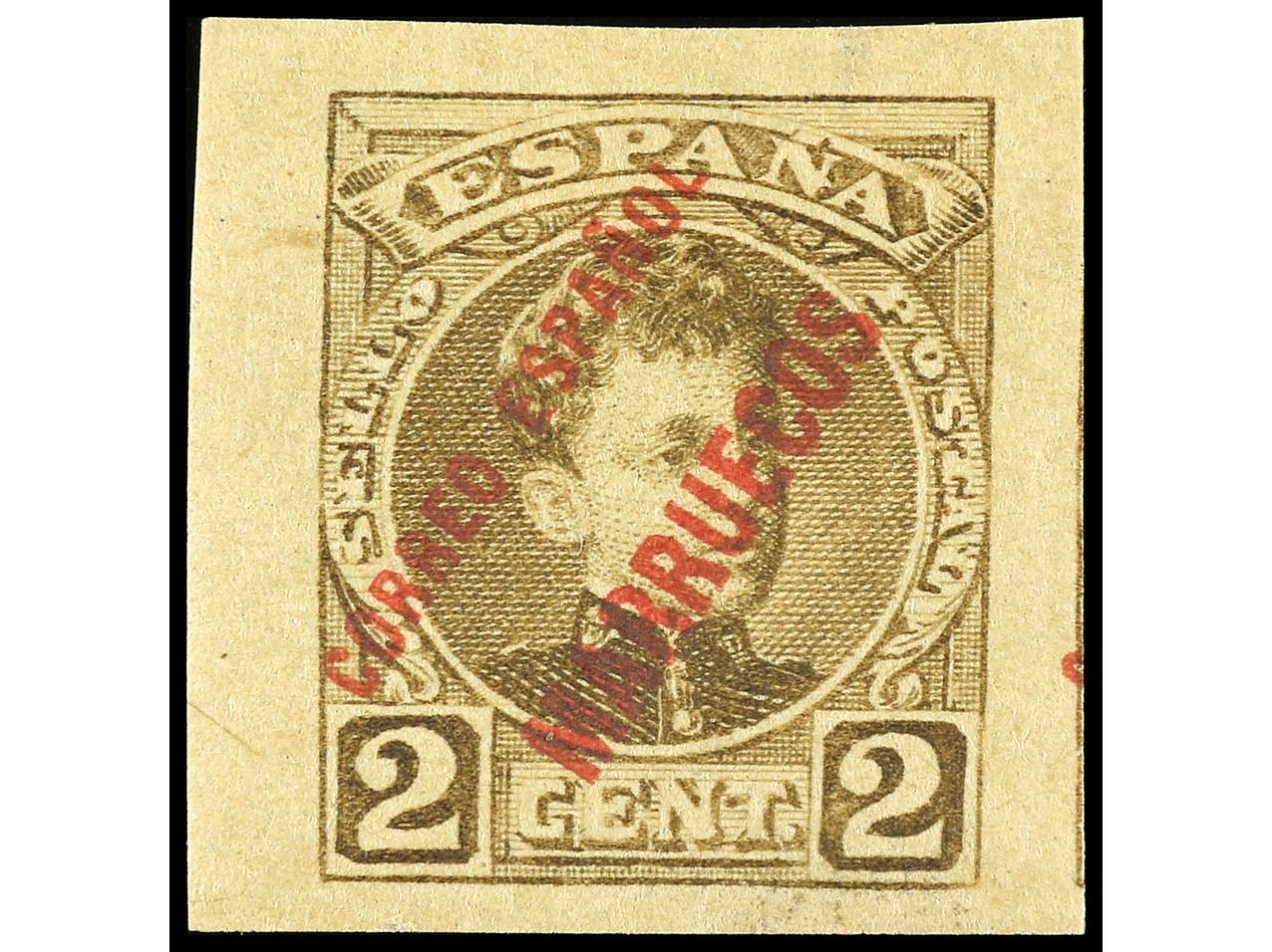 COLONIAS ESPAÑOLAS: MARRUECOS. 2 cts. sepia SIN DENTAR. Infravalorado en el catálogo. MUY RARO. Ed.2s. (Image1)