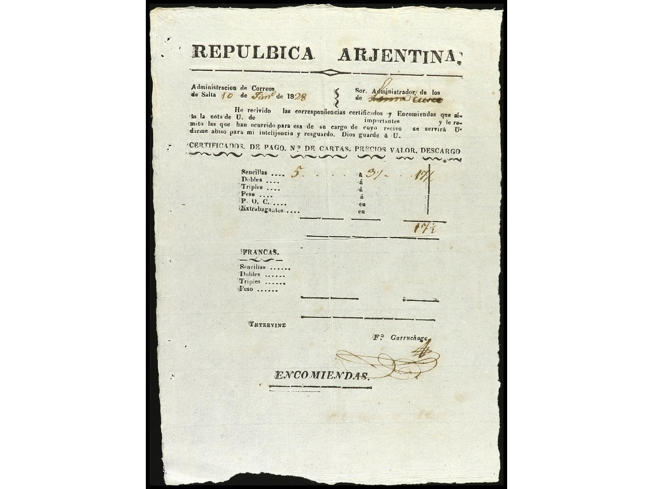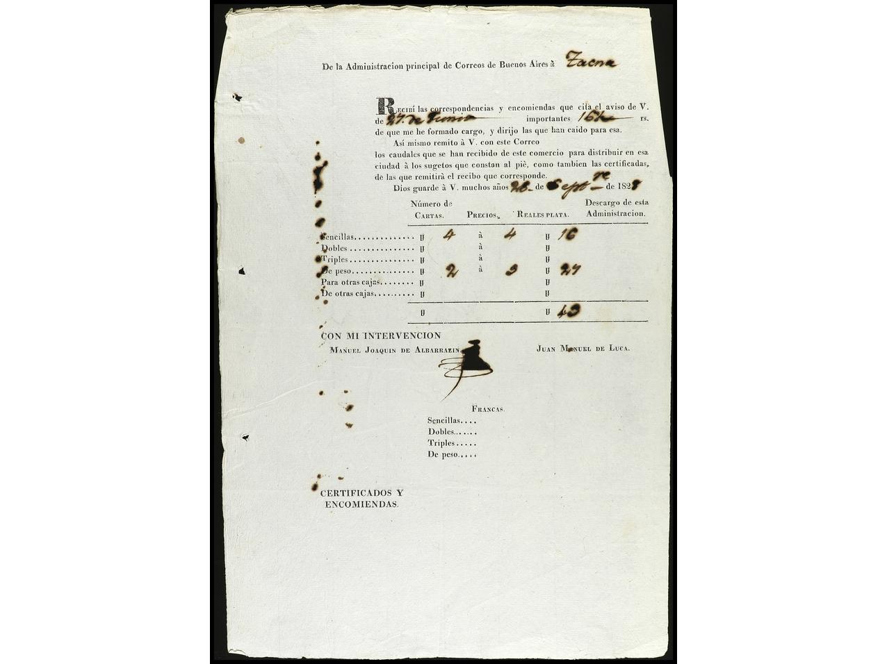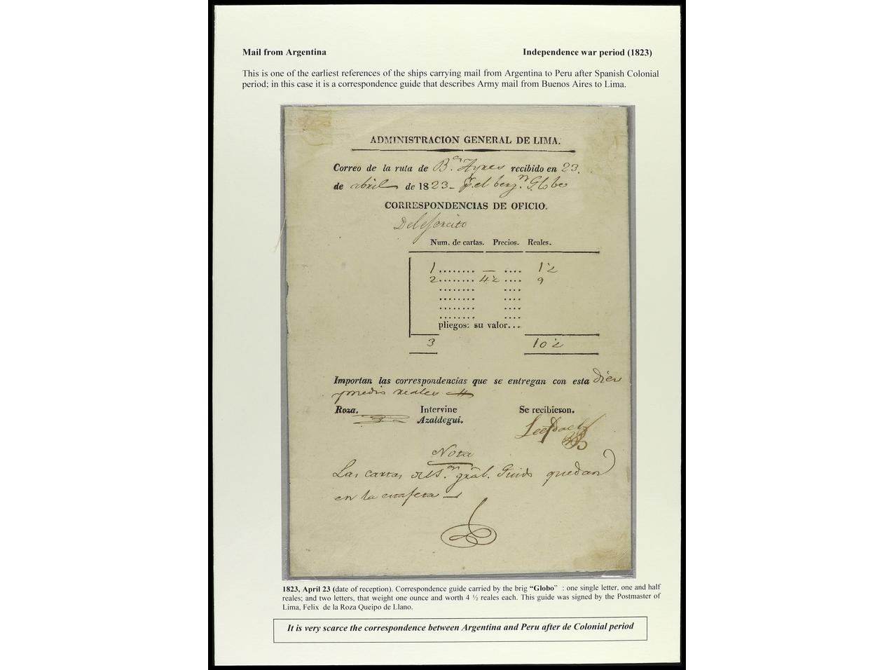 1169 c imageARGENTINA. 1826-30. Conjunto de cinco hojas GUIAS DE CORRESPONDENCIA entre Argentina y Perú. (Image1) (Image2) (Image3) (Image4) (Image5)