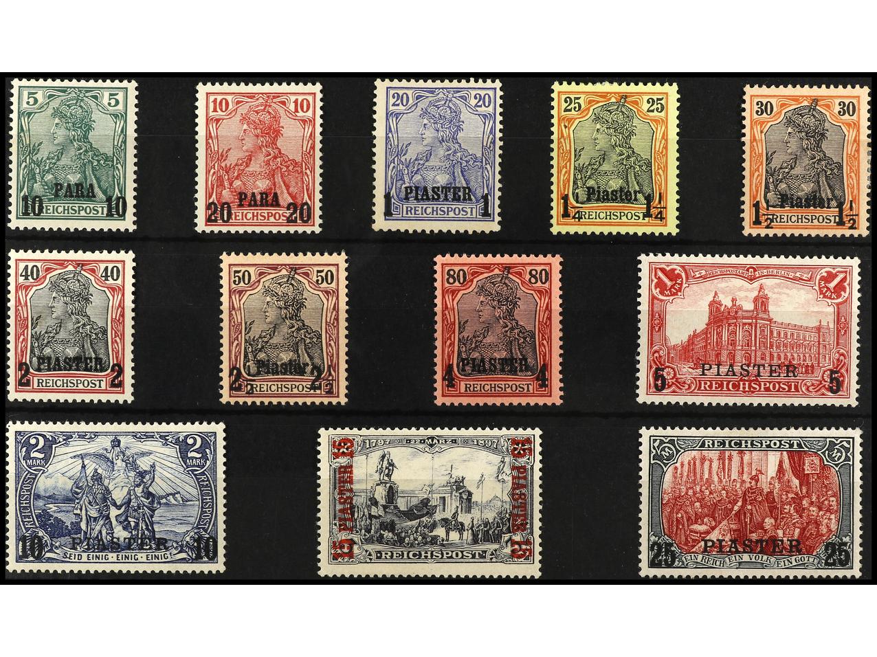 1165 og imageLEVANTE: CORREO ALEMAN. SERIE COMPLETA a falta del 20 pa. s. 10 p. 11 valores. Yv.29/40 sin 30. Cat. 740€. (Image1) (Image2)