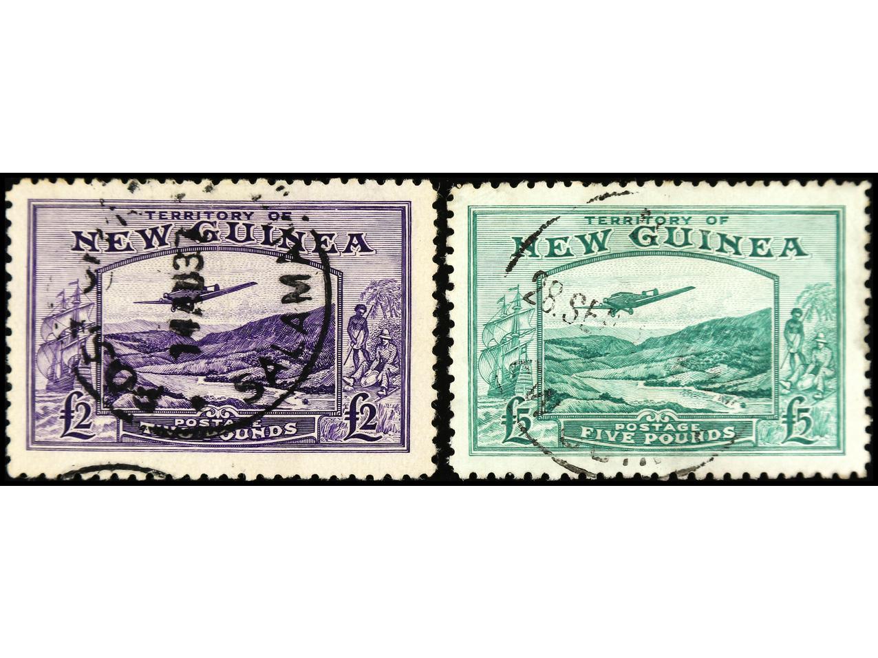 1173 ° imageNUEVA GUINEA (OC.BRITANICA). SERIE COMPLETA. 2 valores. 2 y 5 £. Centrados de LUJO. RARA. Yv.Av.44/45. Cat. 1.000€. (Image1) (Image2)