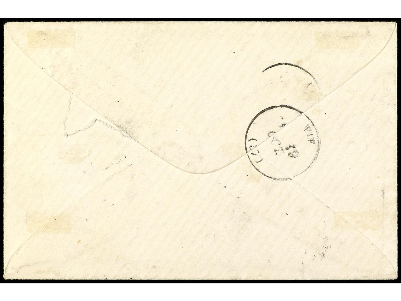 FRANCIA. 1875. PARÍS a CURAÇAO. 40 cts.naranja y 80 cts. rosa (4). Dos dobleces verticales de archivo. Muy rara destinación. Yv.38, 57 (4).