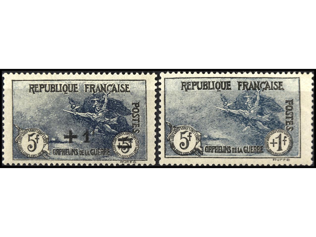 FRANCIA. 1918-296. 1 Fr. s. 5 Fr. + 5 Fr. azul y 5 Fr. + 1 Fr. azul. Yv.169 y 232. Cat. 650€. (Image1)