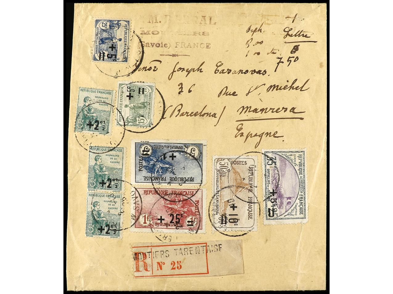 FRANCIA. 1926. TARENTAISE a ESPAÑA. Serie completa en carta certificada, al dorso llegada. Yv.162/69. (Image1) (Image2)