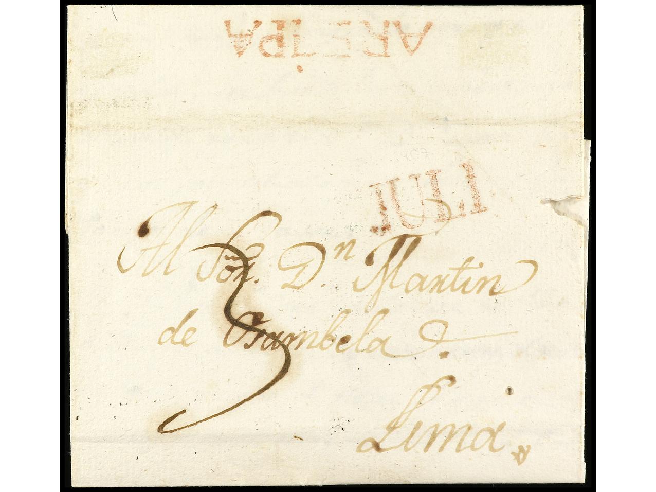 PERU. 1811 (15 abril). ZEPITA a LIMA. Carta completa con texto. Marcas JULI y en el reverso AREQUIPA estampada en tránsito. RARA. (Image1) (Image2)