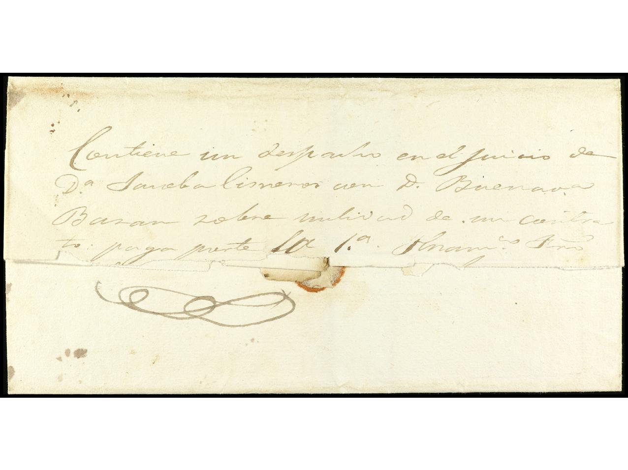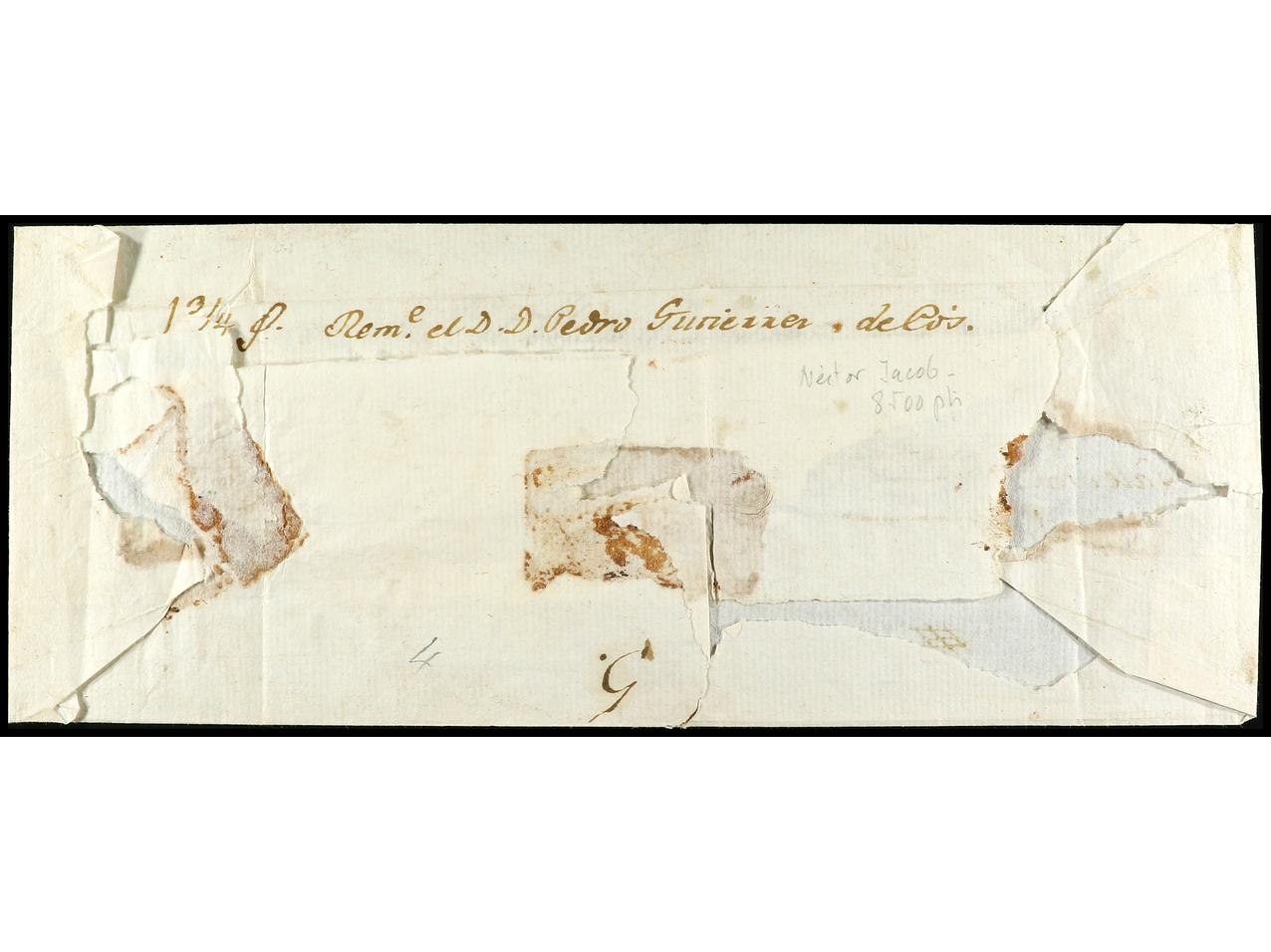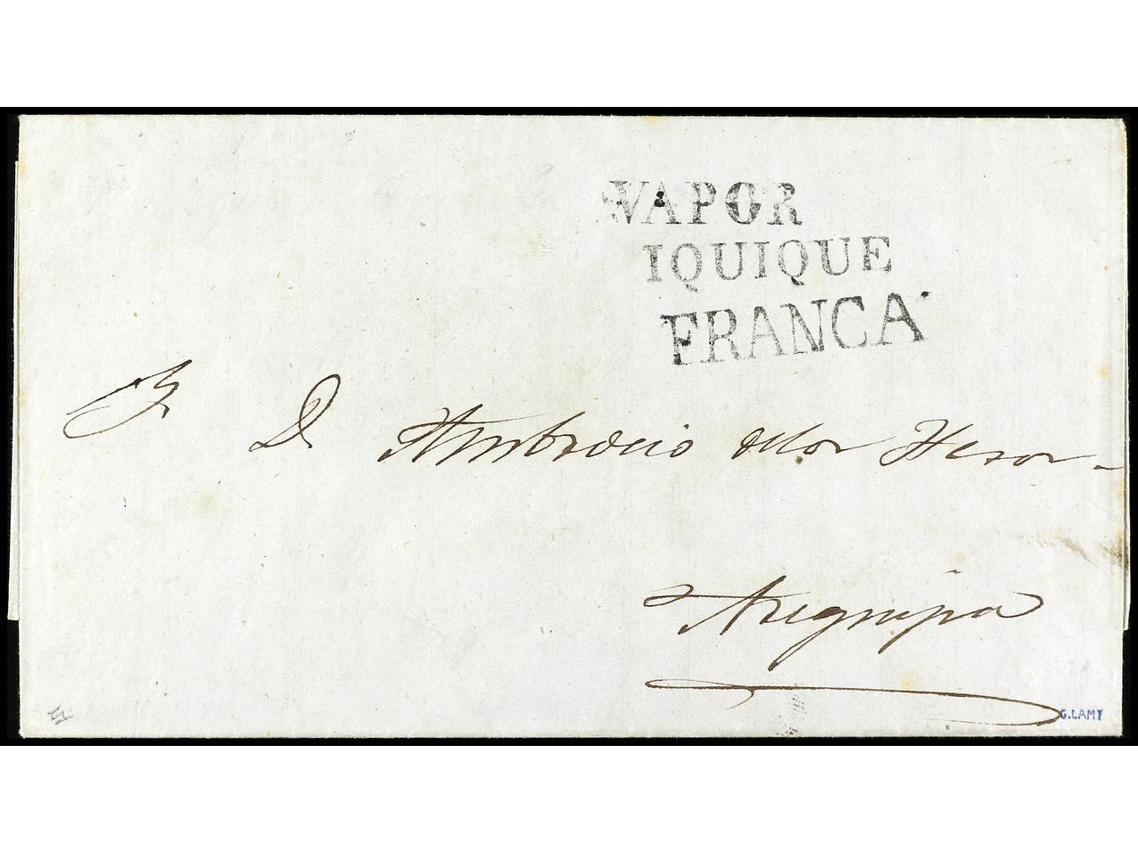 PERU. 1853 (19 abril). IQUIQUE a AREQUIPA. Marcas VAPOR FRANCA IQUIQUE en negro. PRECIOSA. Ex. col. LAMY. (Image1) (Image2)
