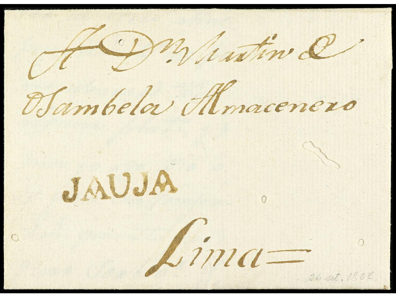 PERU. 1804 (26 septiembre). JAUJA a LIMA. Marca JAUJA en tinta de escribir (col. nº 1). PRECIOSA y MUY RARA usada en época Colonial. (Image1) (Image2)
