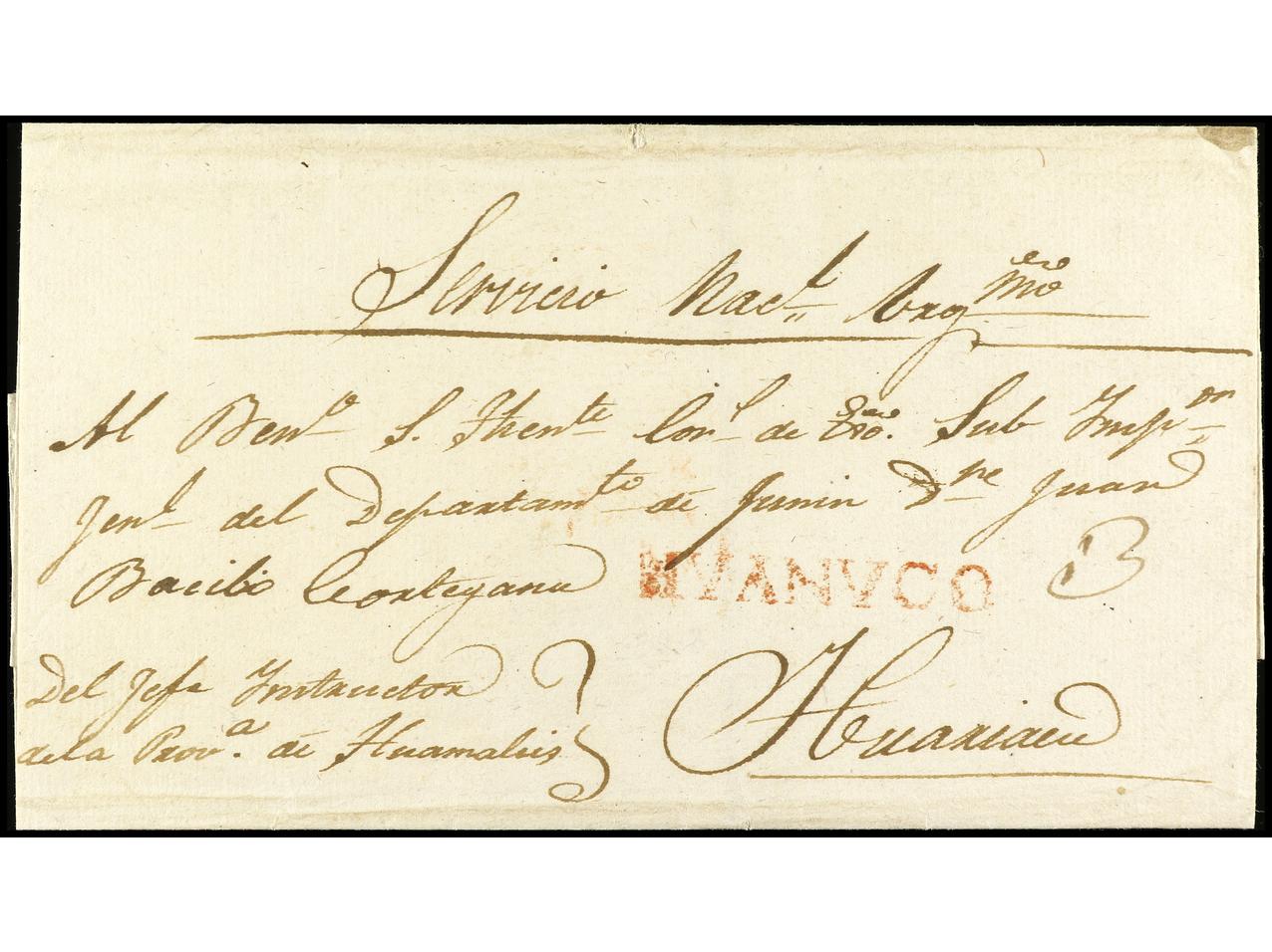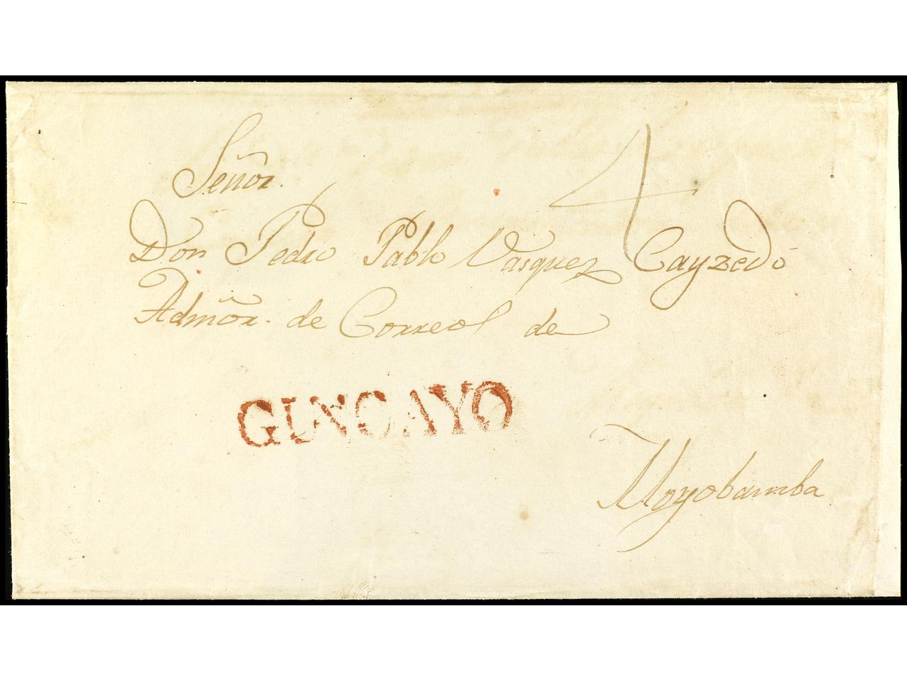 PERU. 1829 (17 marzo). GUANCAVELICA a ANDAHUAYLAS. Marca GUANCA/VELICA en rojo. (Col. nº 3). (Image1) (Image2)