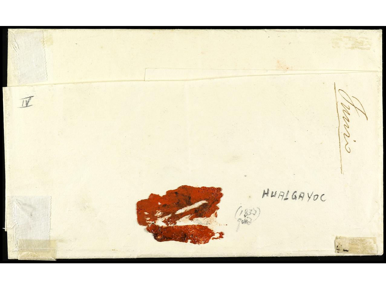 PERU. (1830 ca.). Envuelta circulada a TRUJILLO. Marca HUALG.C. de Hualgayouc en rojo. (Col. nº 1). PRECIOSA. (Image1) (Image2)