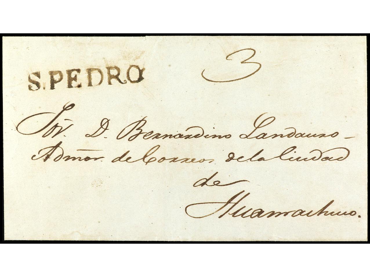 PERU. (1844 ca.). Envuelta circulada a HUAMACHUCO. Marca S. PEDRO en negro. PRECIOSA. (Image1) (Image2)