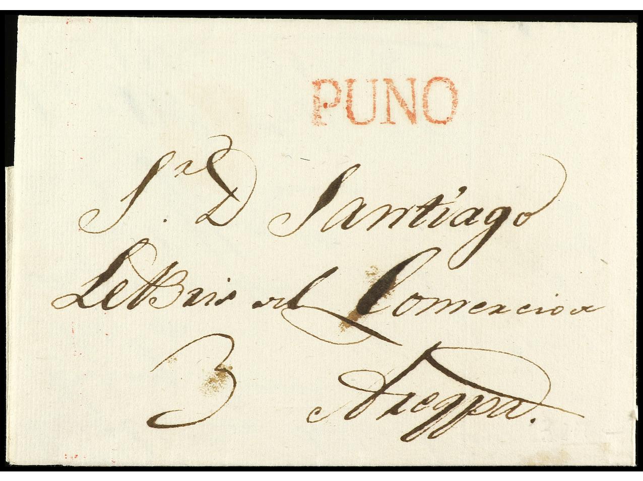 PERU. 1829 (31 diciembre). PUNO a AREQUIPA. Carta completa con texto. Marca PUNO en rojo (col. nº 3). PRECIOSA. (Image1) (Image2)