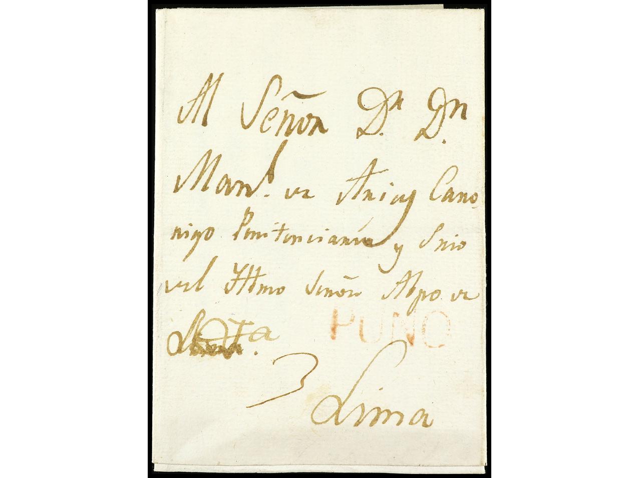 PERU. 1812 (4 octubre). CHUCUITO a LIMA. Carta completa con texto. Marca PUNO en rojo. (Co. nº 2). (Image1) (Image2)