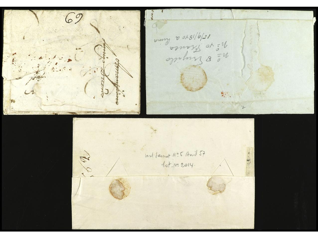 PERU. 1807-1840. Tres cartas con diversas marcas de TRUJILLO. (Image1)