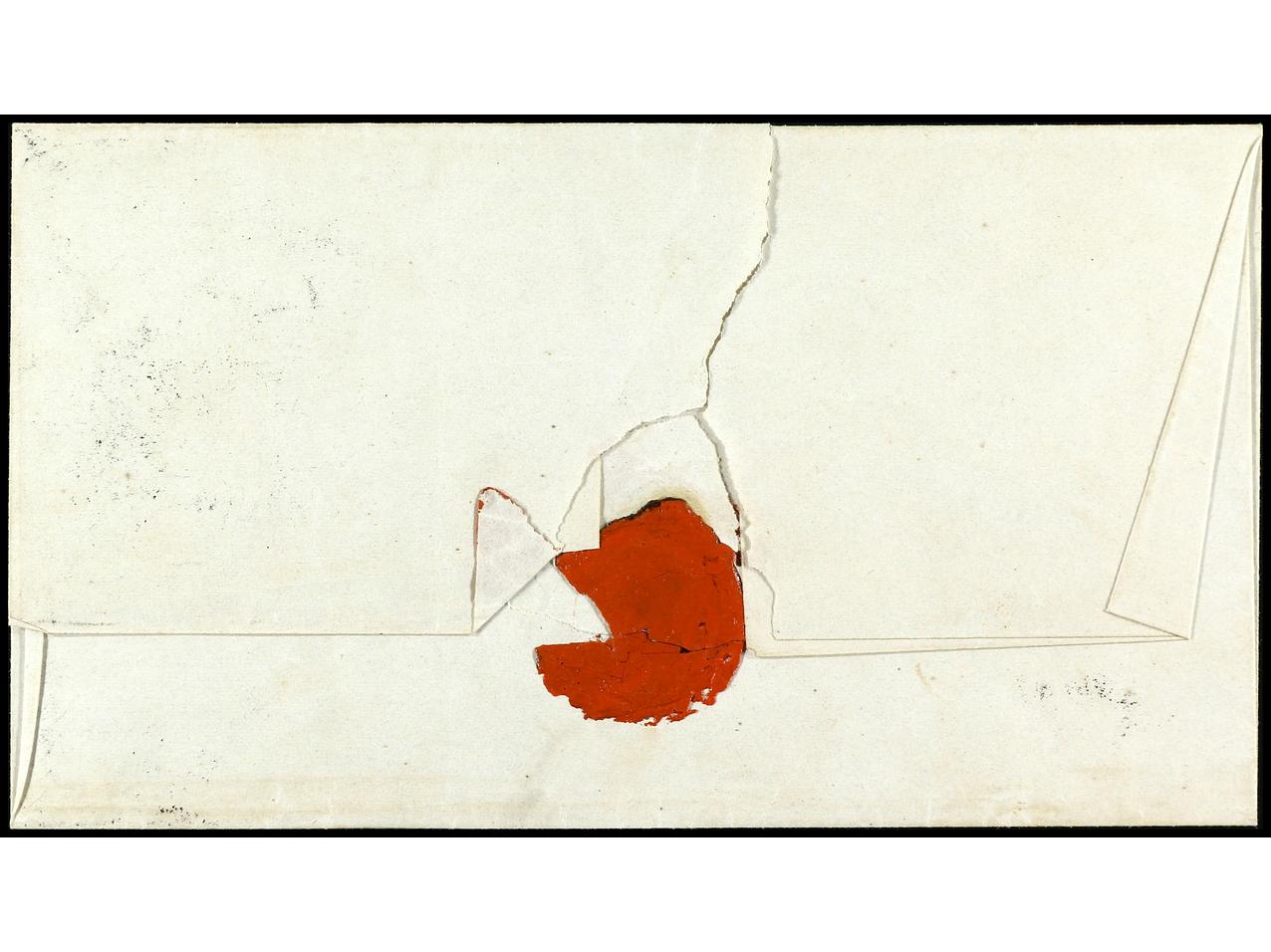PERU. (1815 ca.). Frontal circulado a CÁDIZ. Marcas TRUXILLO y PERU ambas en rojo. MUY RARAS.. (Image1)