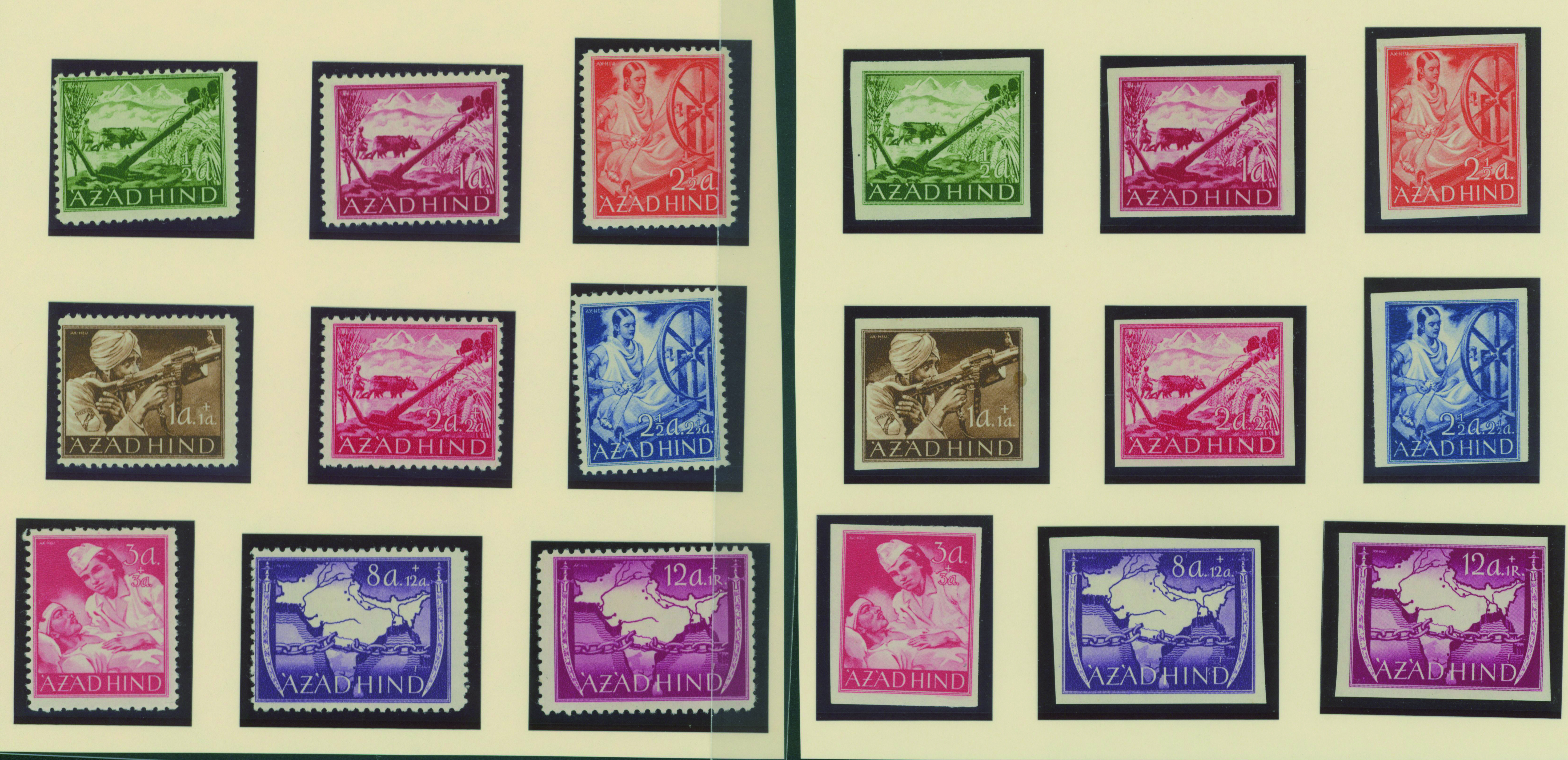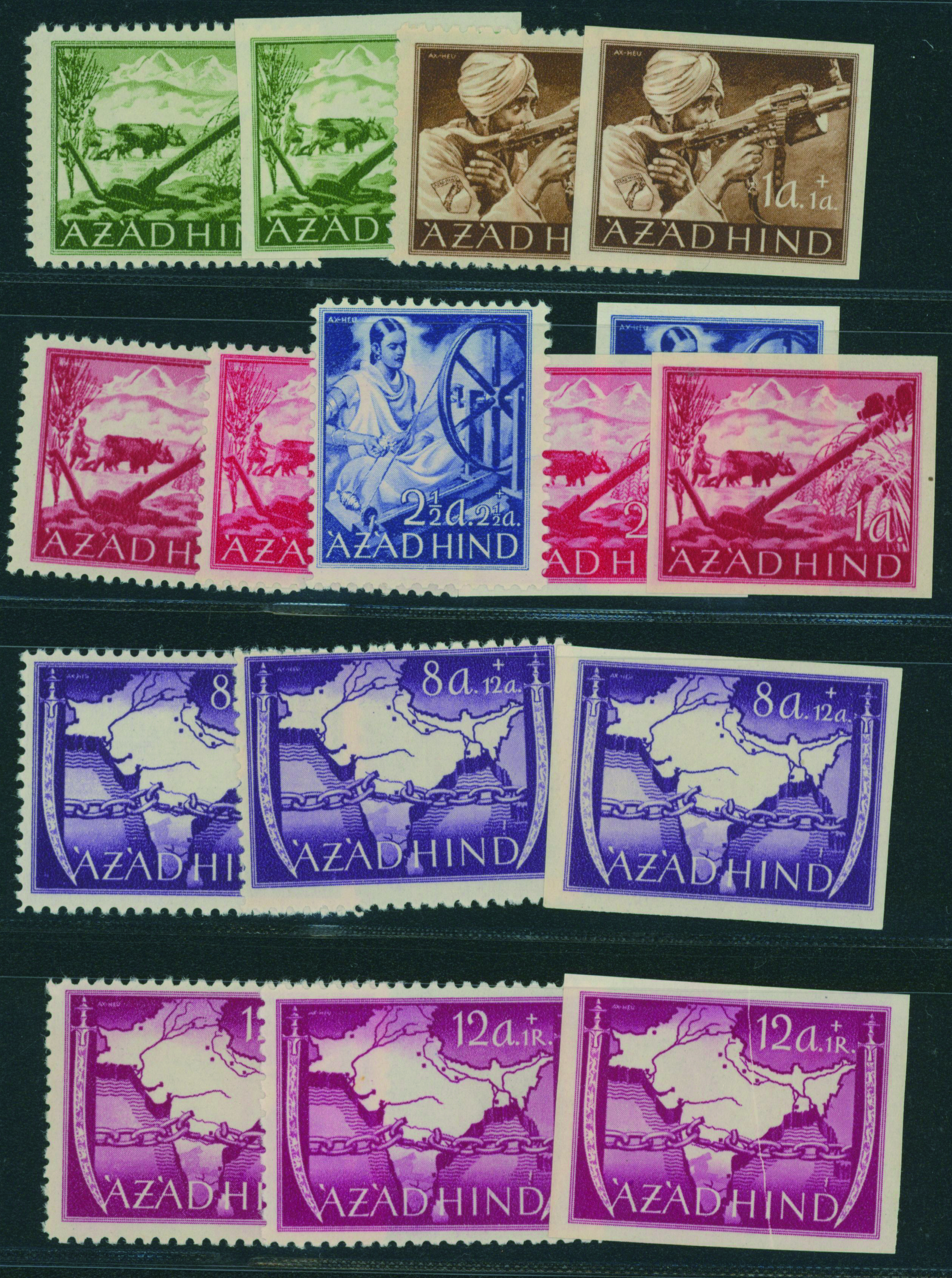 1943 Indian National Army, unissued samps , 18 stamps 1/2 A - 12 A unused perf. and imperf. (Image1)
