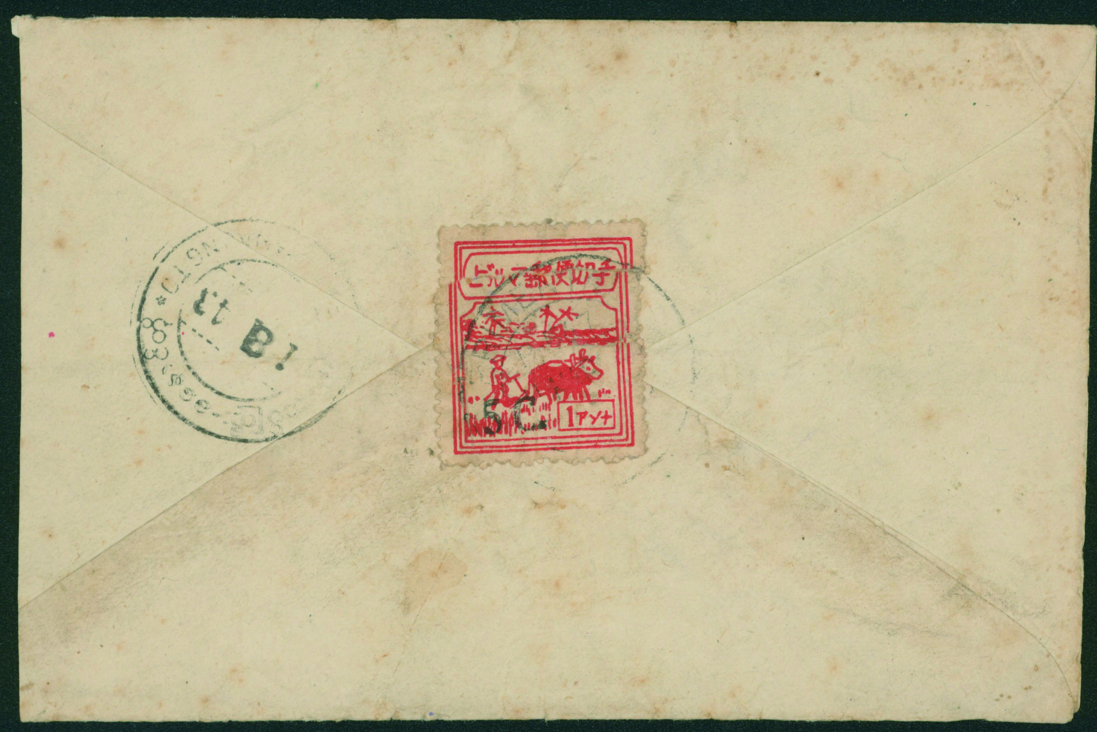 Burma 1942 1a stamped envelope datestamp 1942-08-21 Kangyidaung to Rangoon GPO arrival :10/16 (Image1) (Image2)