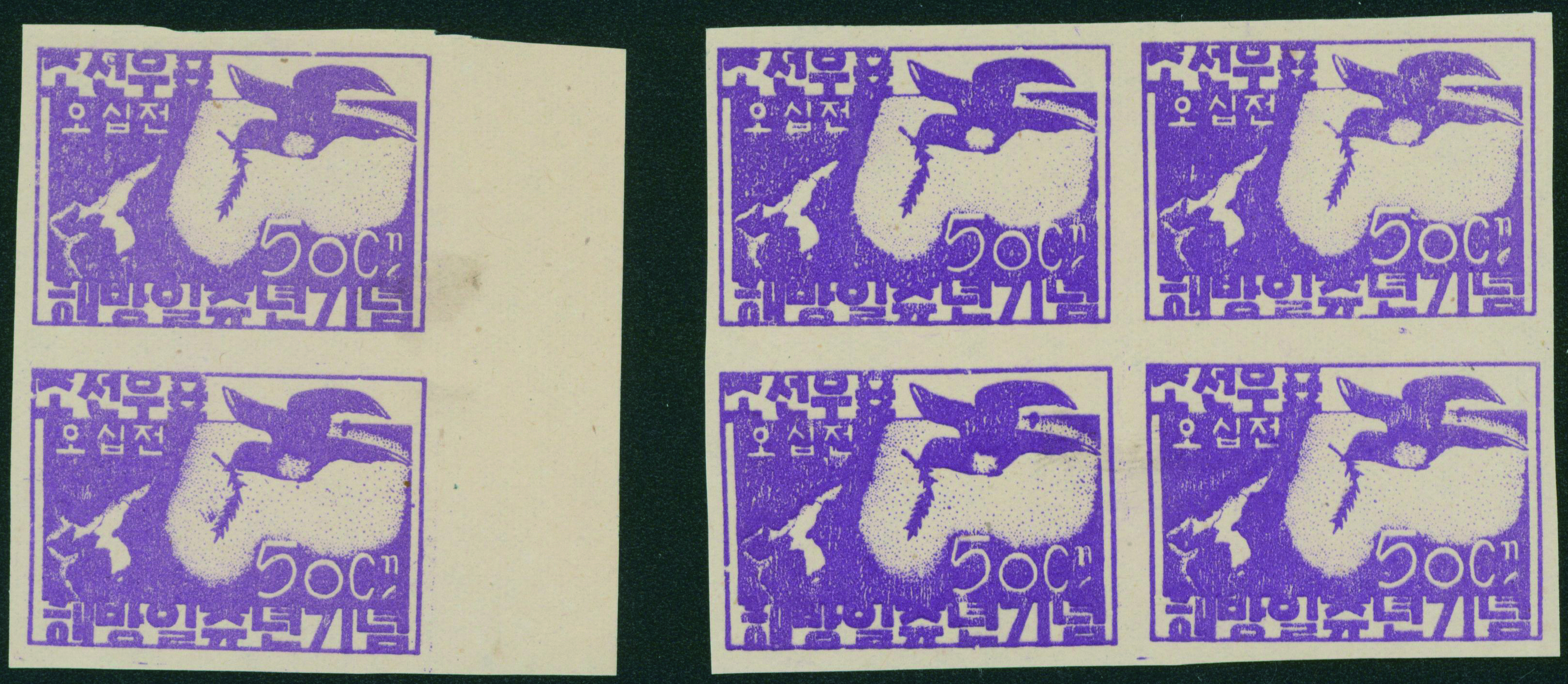 South Korea 1946 50ch First Anniv.of Liberation Block Pair Lot unused (Image1) (Image2)
