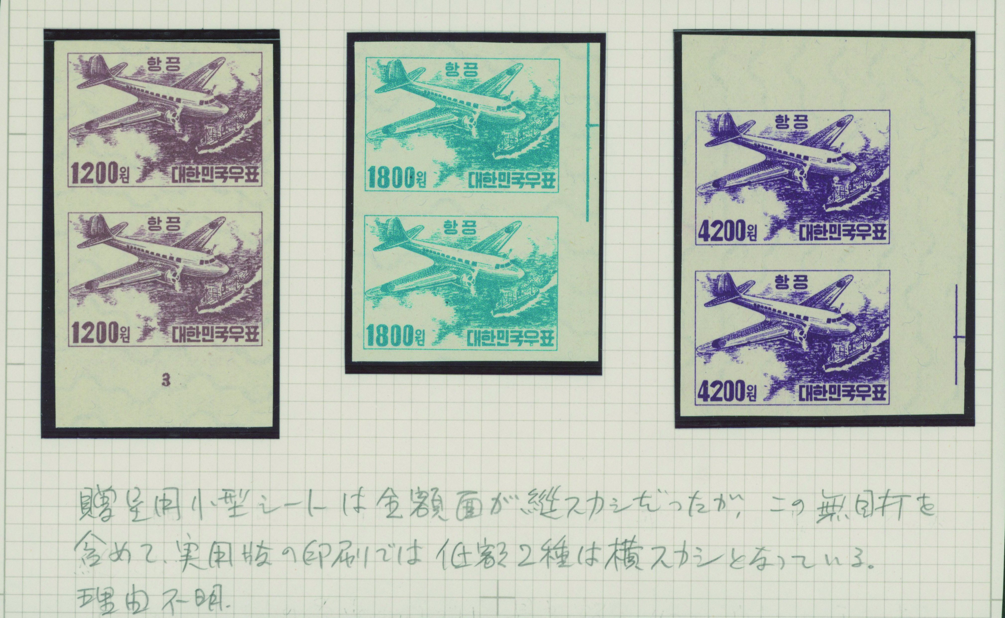South Korea 1952 1200w 1800w 4200w Won Airmail Issue Imperf pair unused fresh surface , (Image1)