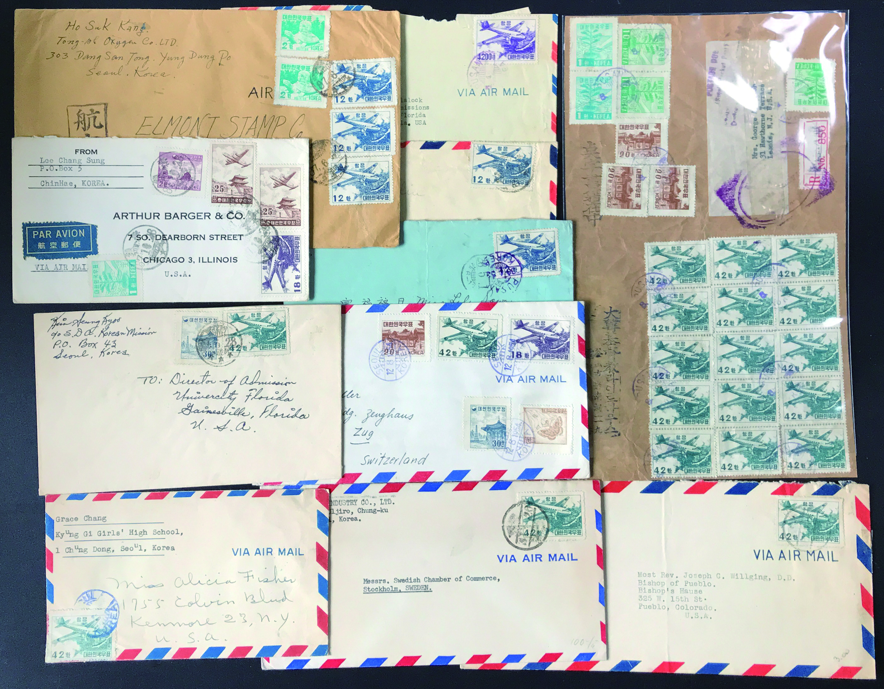 South Korea 1953 Airmail stamp cover and cut lot 11 examples to USA (Image1)