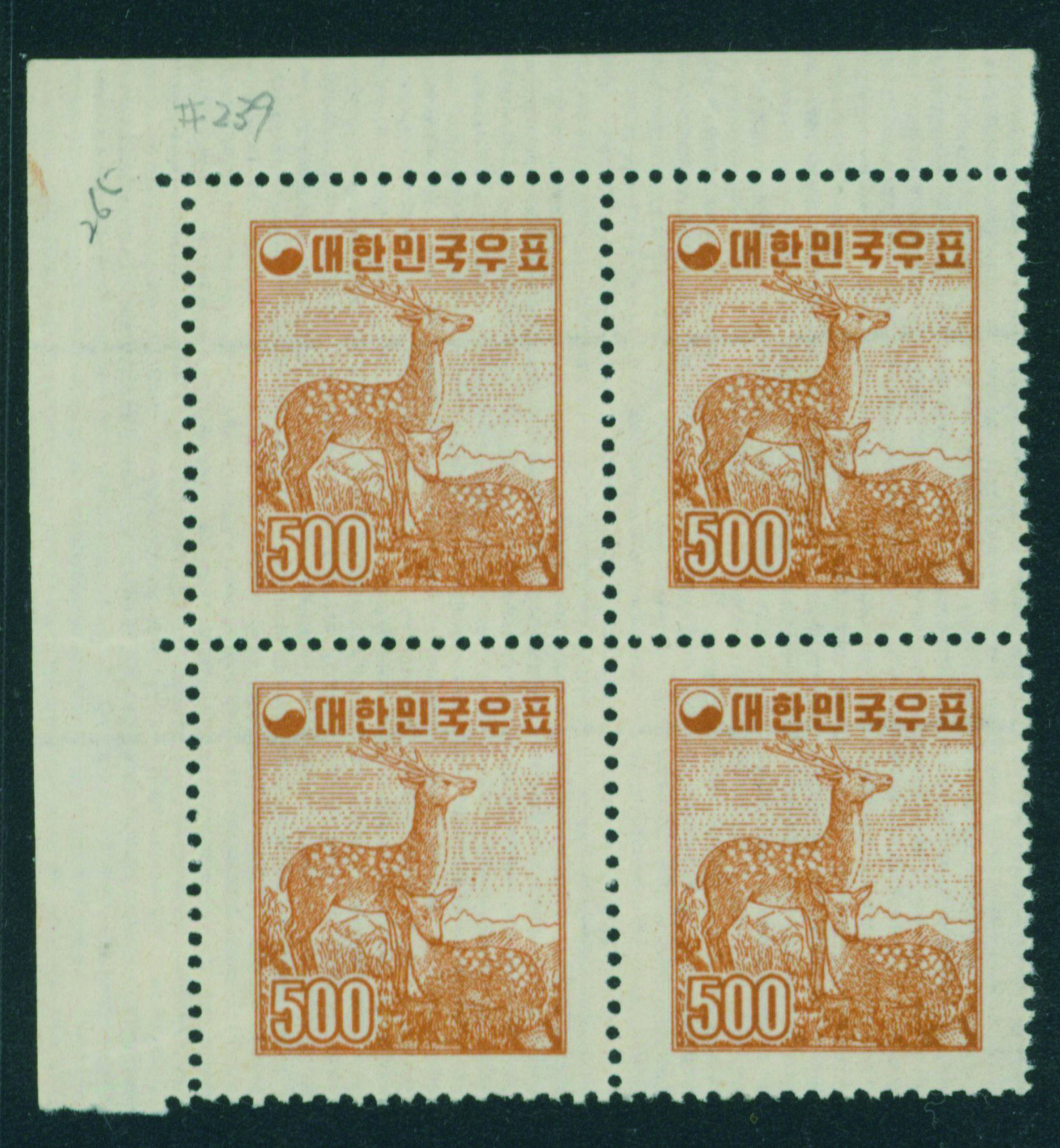 South Korea 1956 500w Block of four unused (Image1) (Image2)