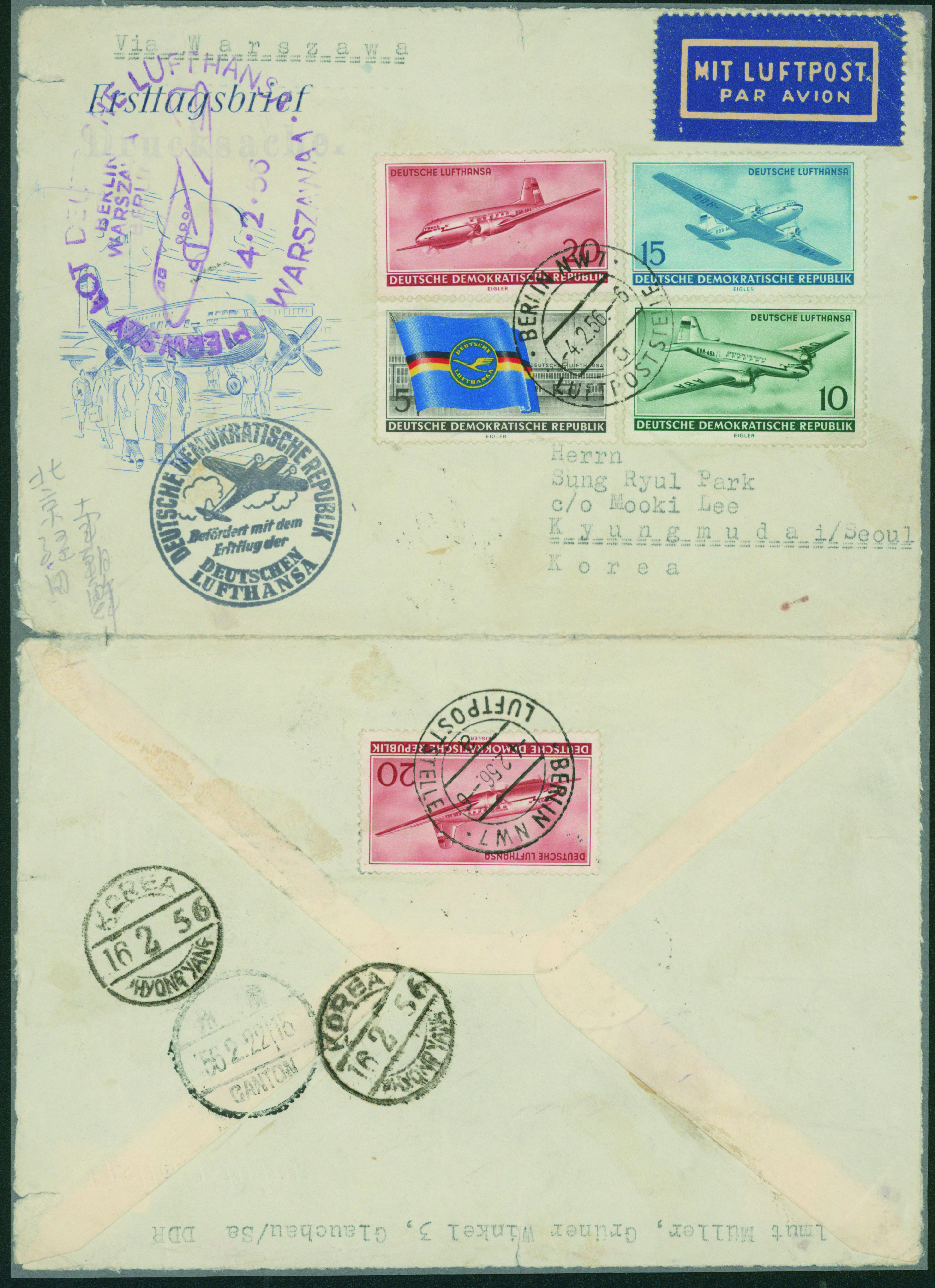 South Korea 1956 DDR to South Korea usage Missent to North Korea Pyong yang→CANTON→Seoul (Image1)