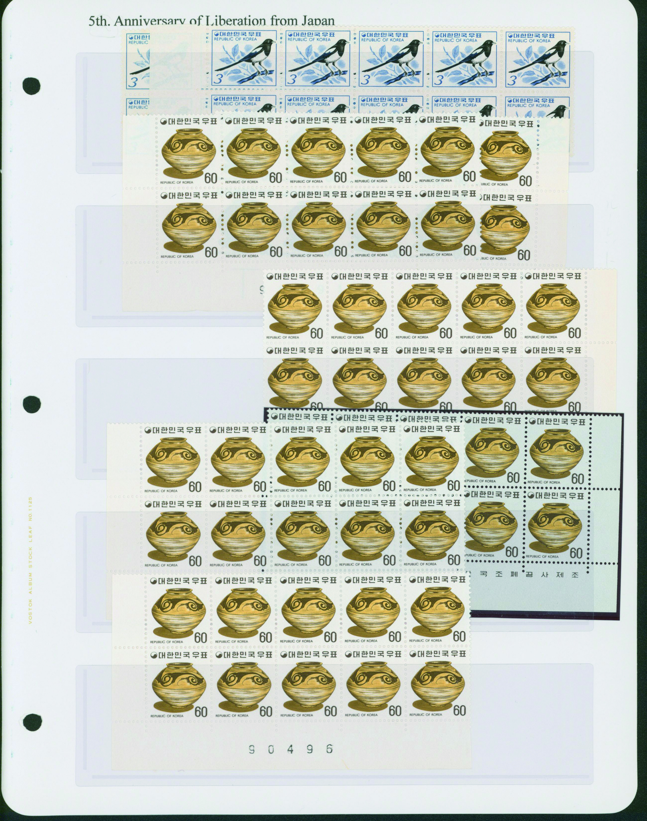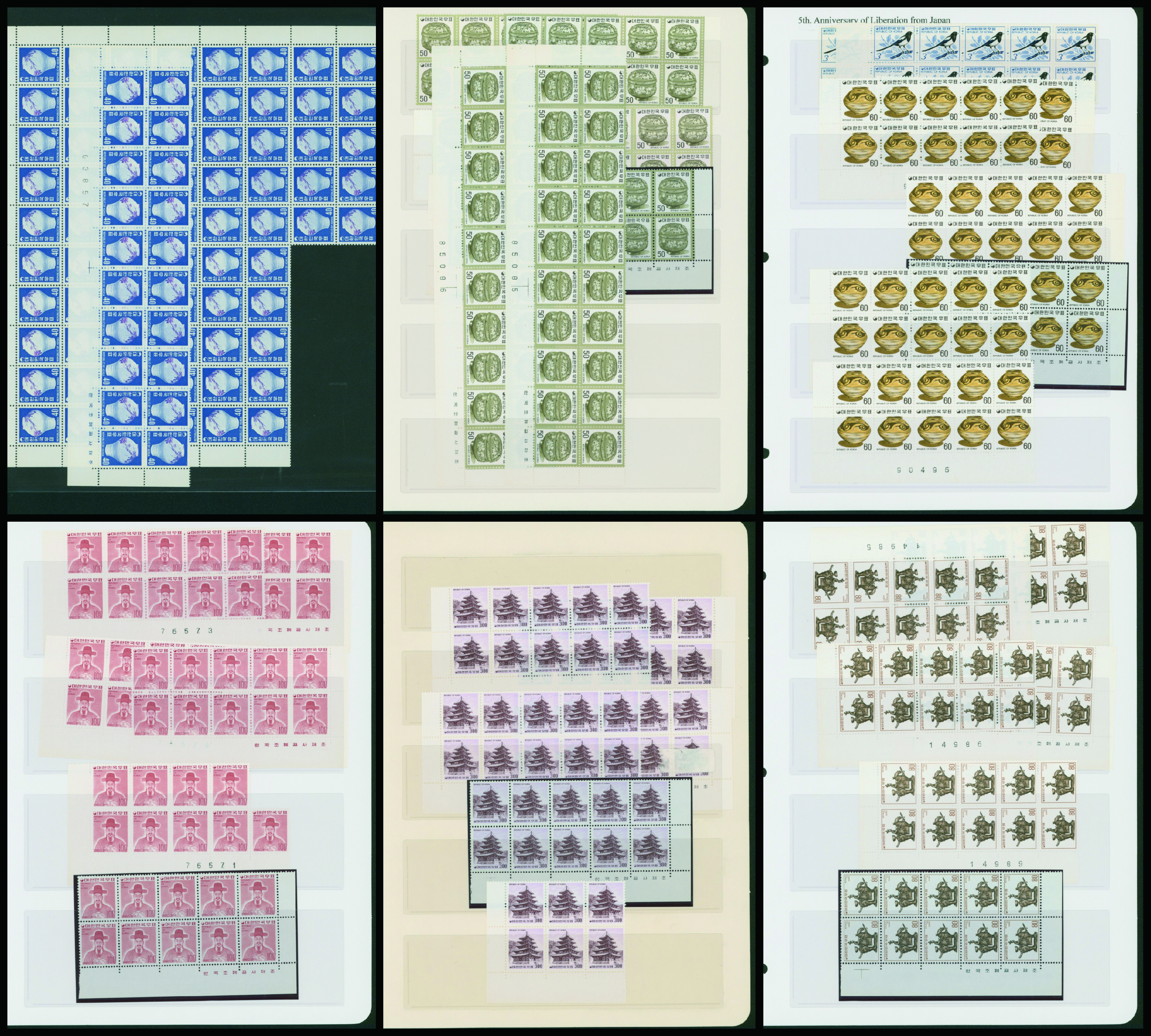 South Korea 1969~ 9 sheets 5,6,40,50 Won Sheet Lot unused (Image1)